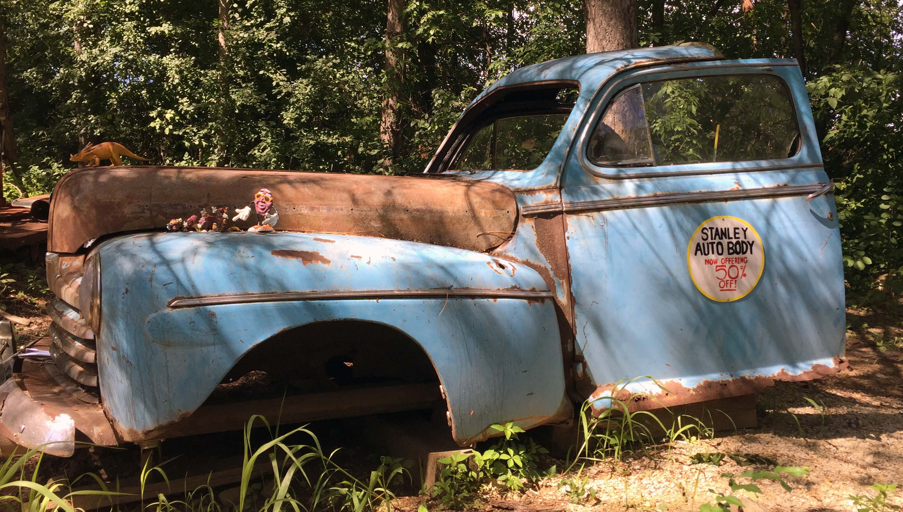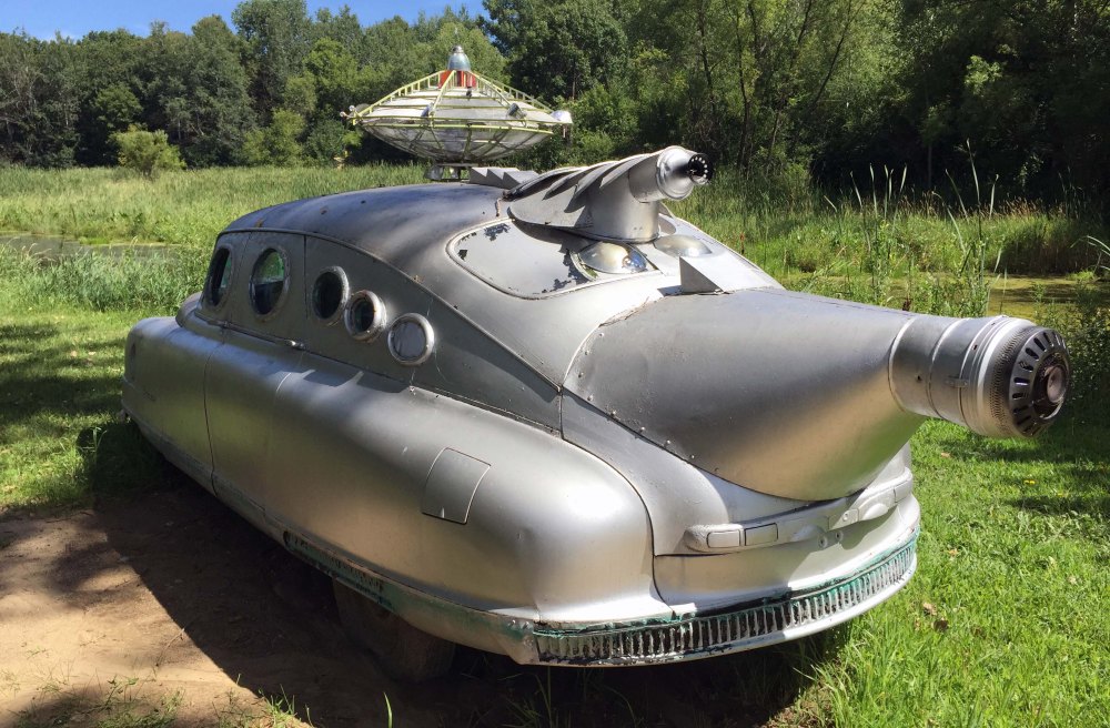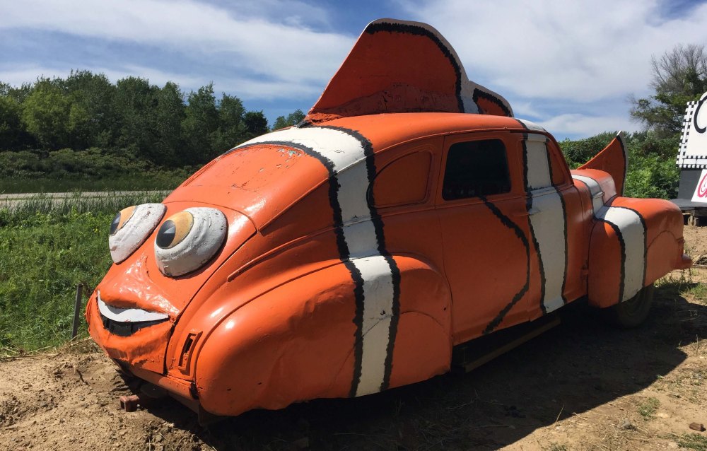 If you are willing to walk a little farther, you can see whatever the owner currently is displaying to the Interstate to entice folks off the highway, like this Finding Nemo car, and a rocket ship.  The ingenuity is impressive – Trace