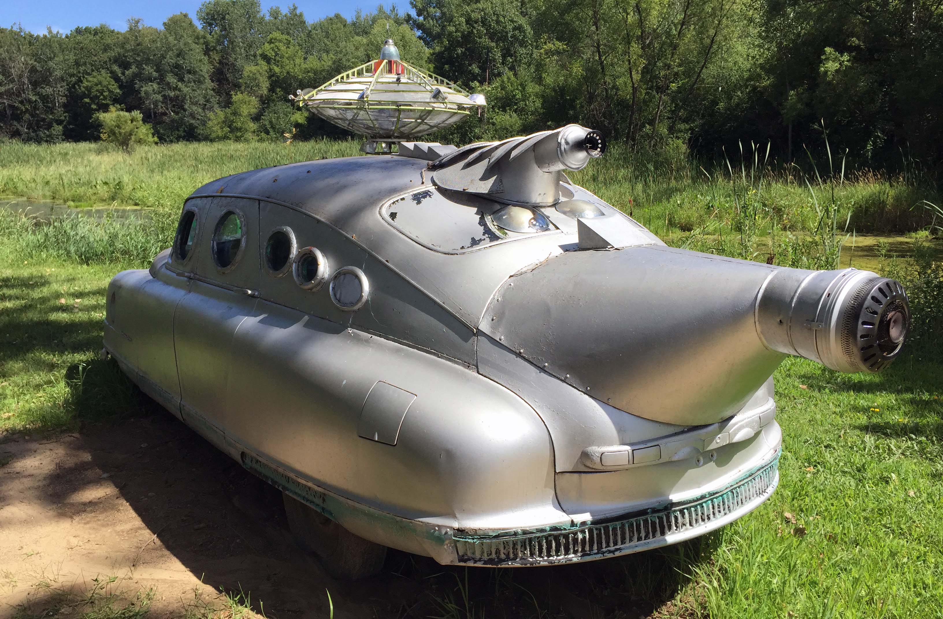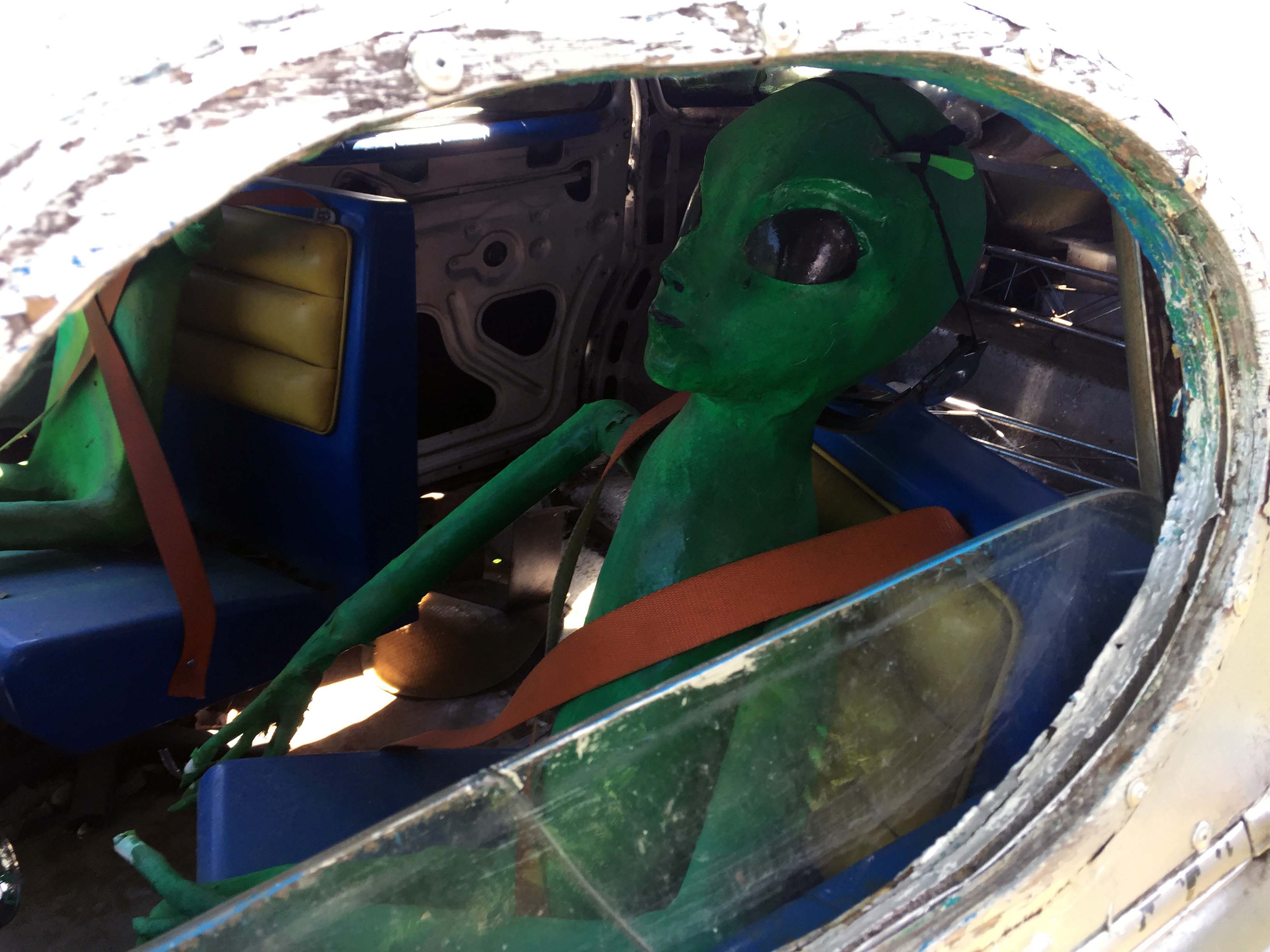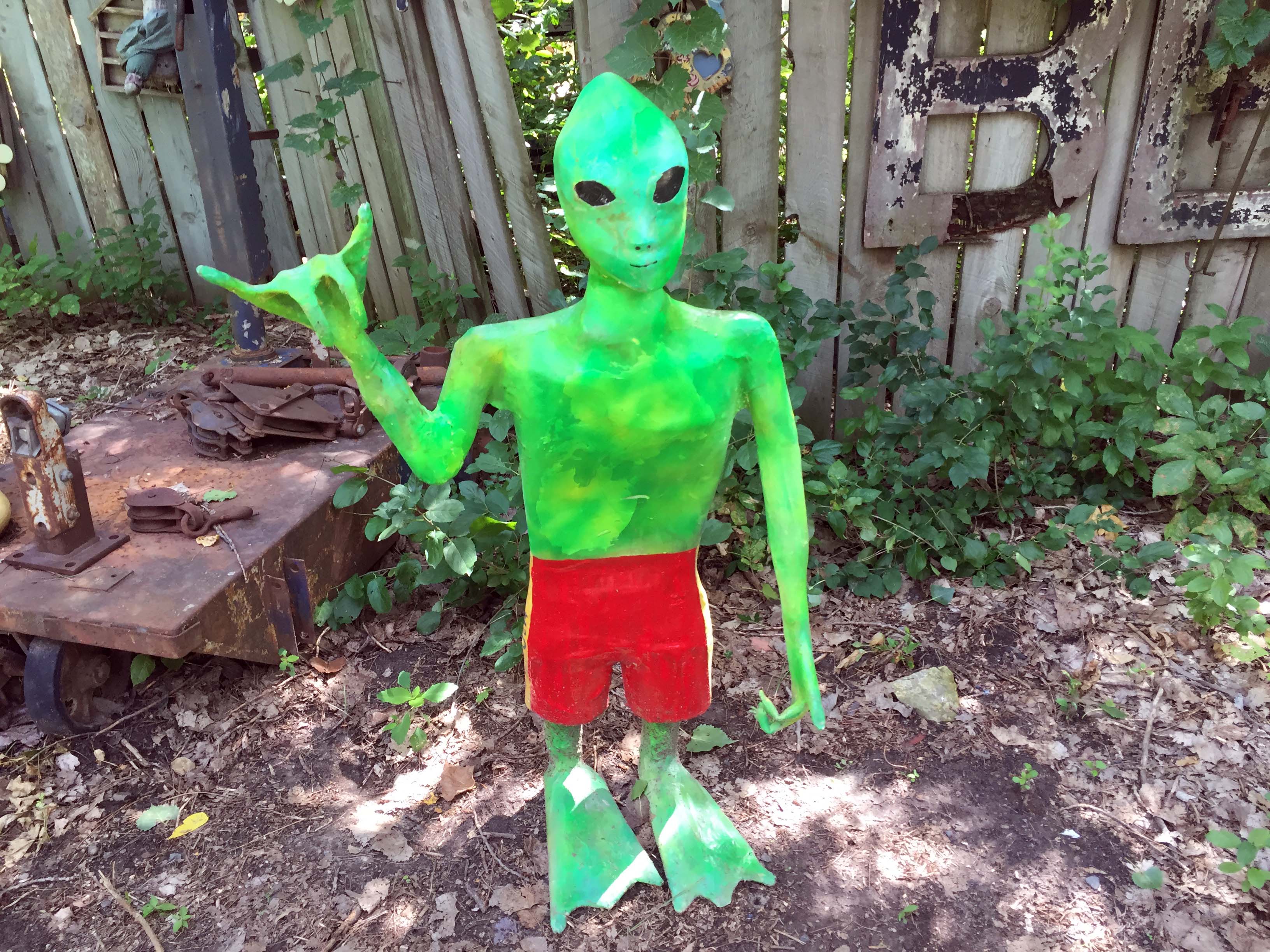 Also loved this alien car, as well as the HUGE UFO suspended on a cable strung across the pond.
