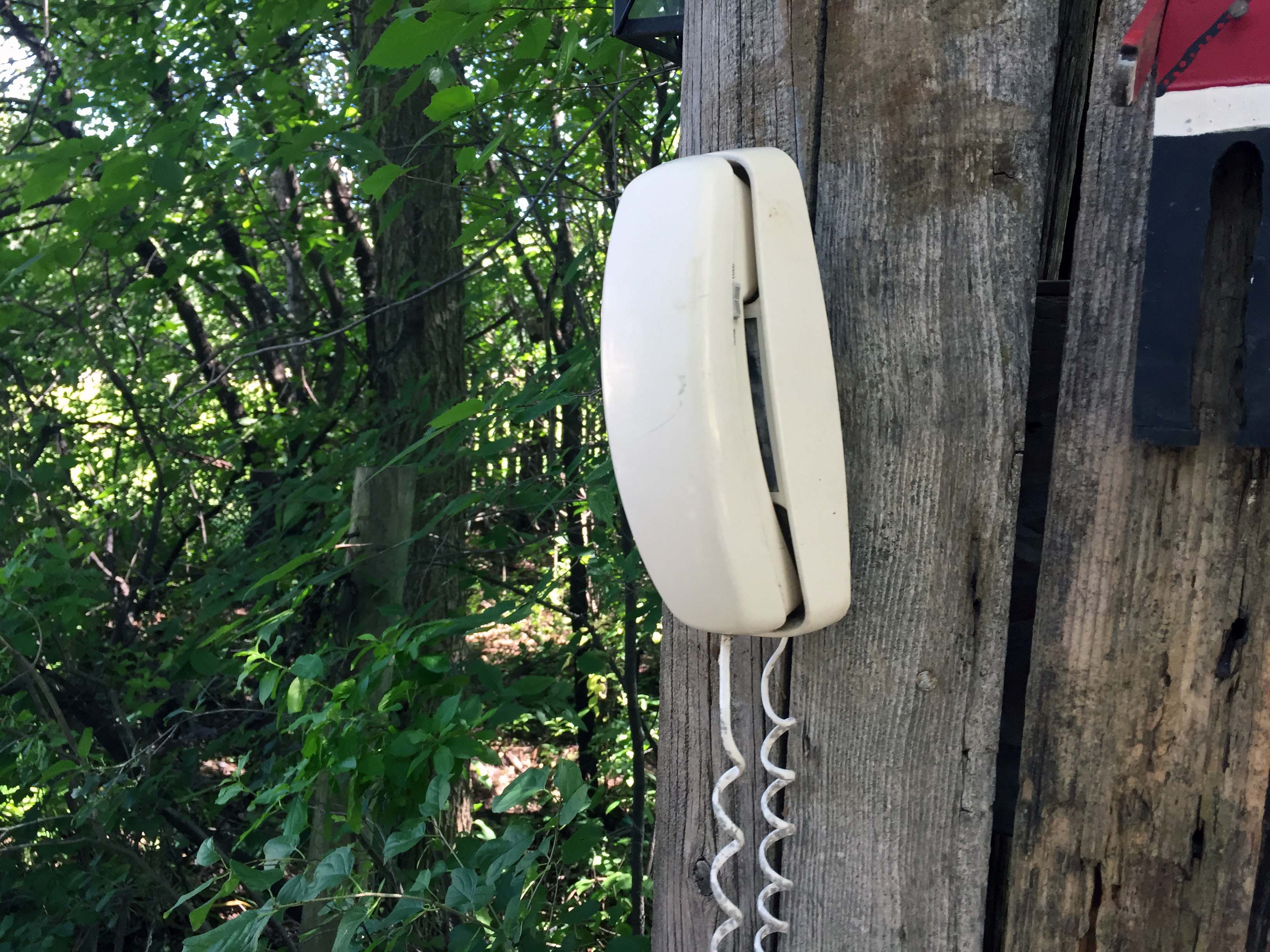 At the end of the driveway, or the beginning, depending on your perspective, there is a phone. Not plugged into anything, just hanging there. In case someone wants to buy it. (Again you gotta wonder what was going on in this guys mind- Trace)