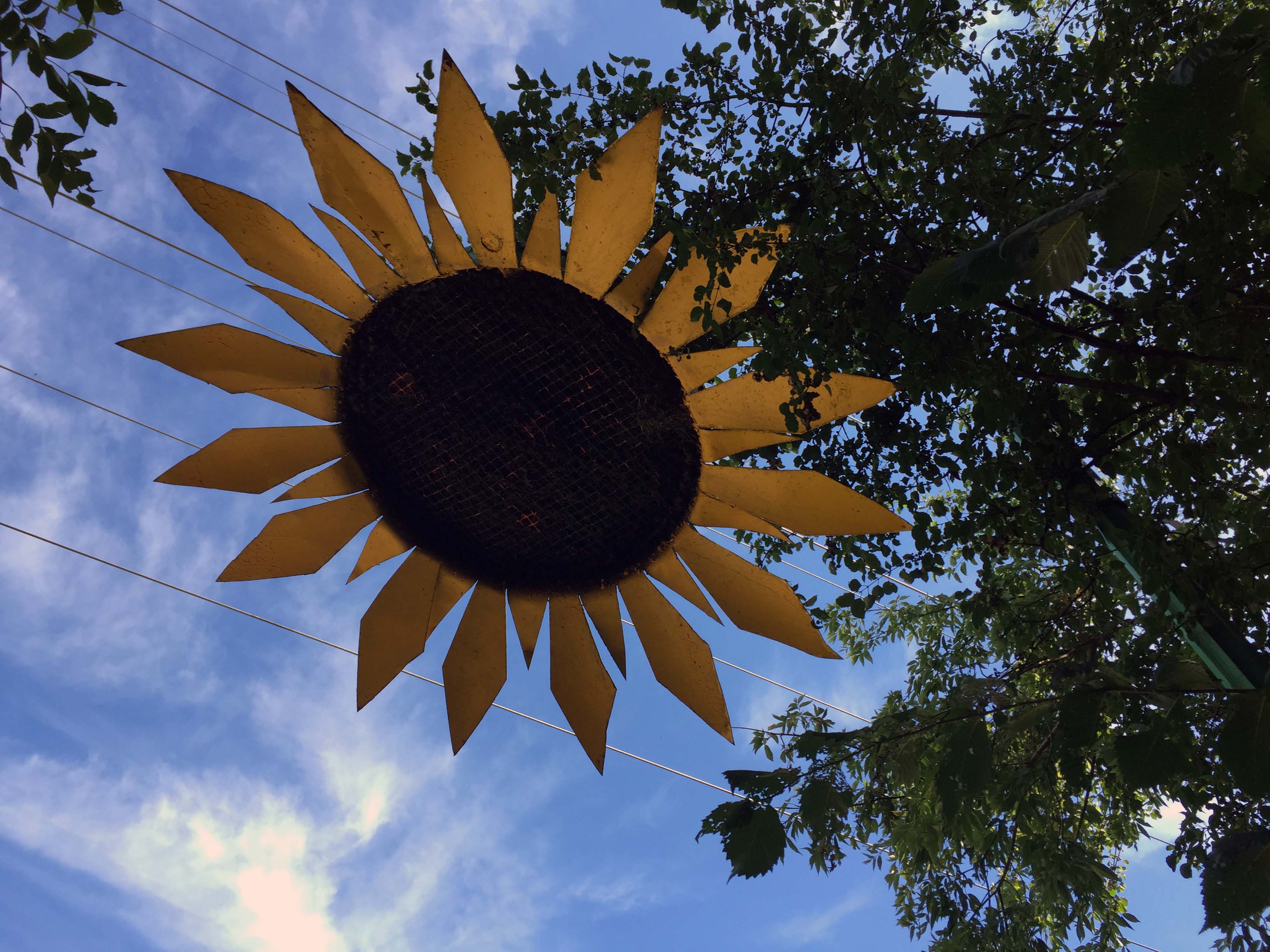 The entrance/exit is guarded by another one of those GIANT metal sunflowers. Those things are easily 10 feet across.