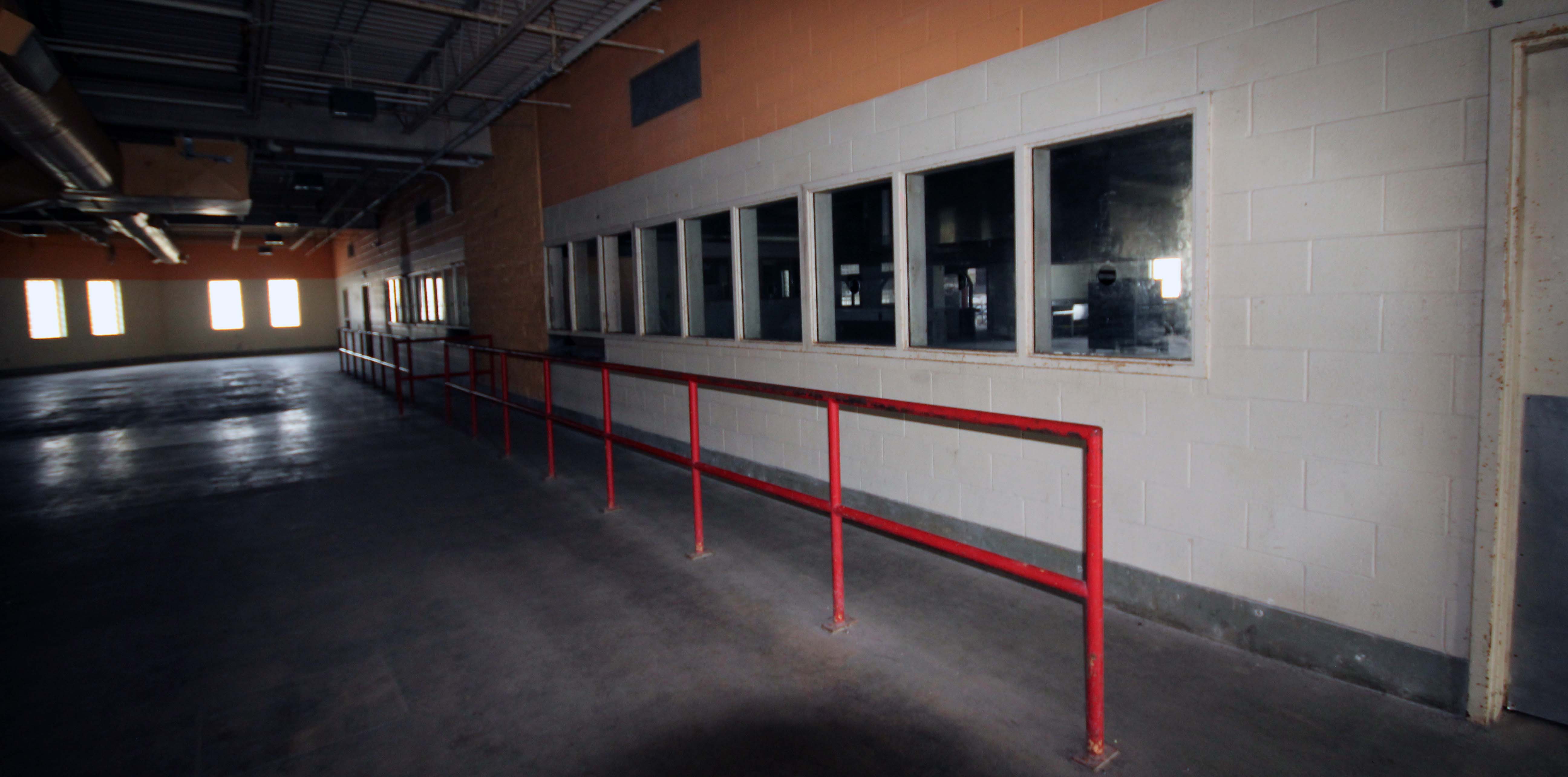 The windows where inmates selected their food. At the end of the line was a thin slit through which they would get their tray.