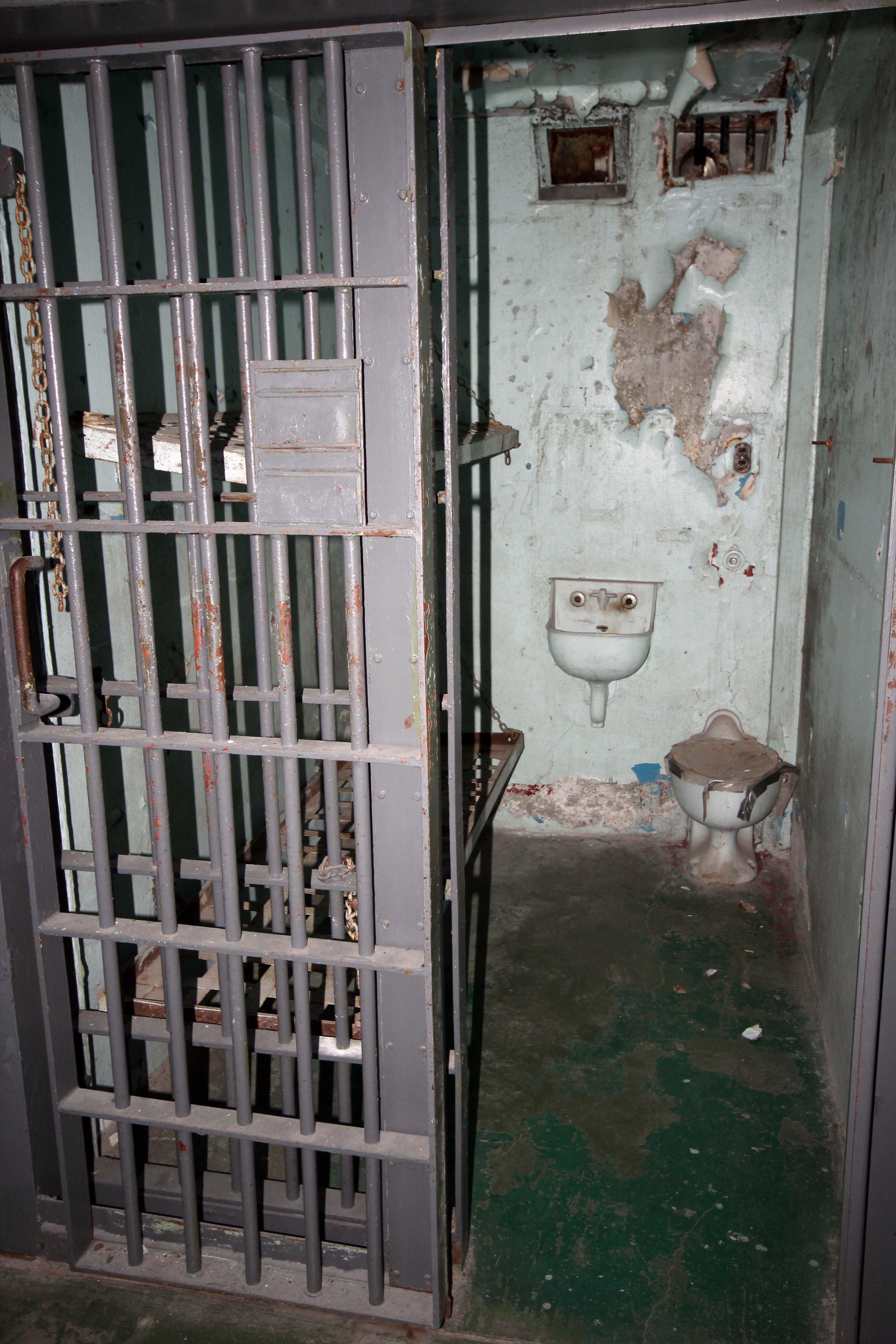 An inmate who was in a wheelchair had to have his door widened at the bottom for the wheel to fit through. Also note the “bean hole” in the bottom of each door. For the inmates who slept on the floor, if they slept with their head near the door, they risked having their throats slit.