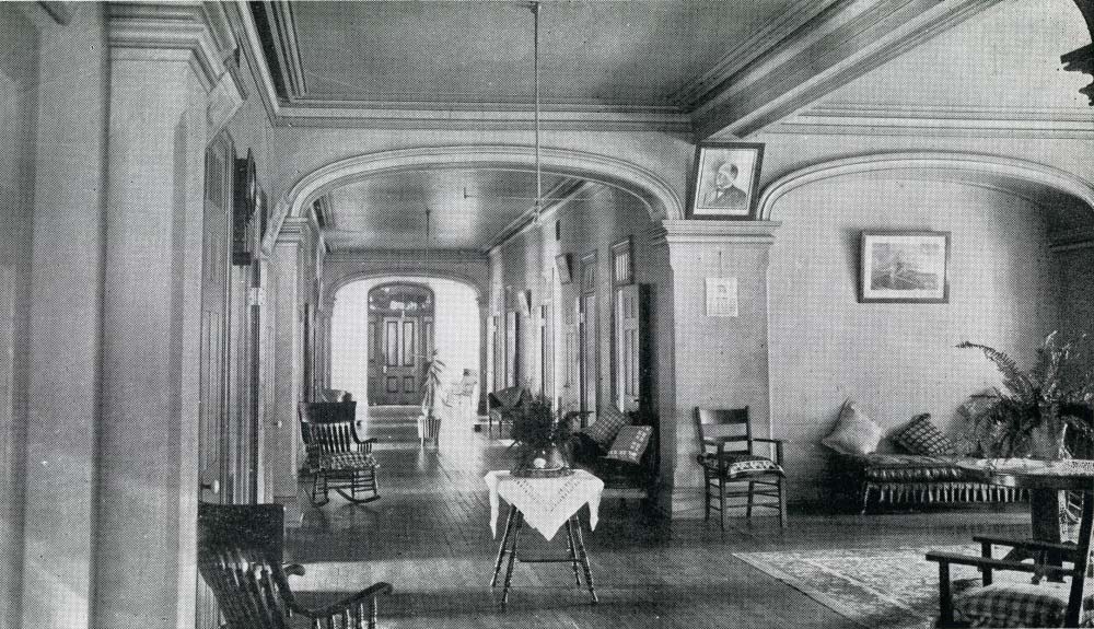 One of the patient wards, with a day-room partially shown on the right, circa 1912