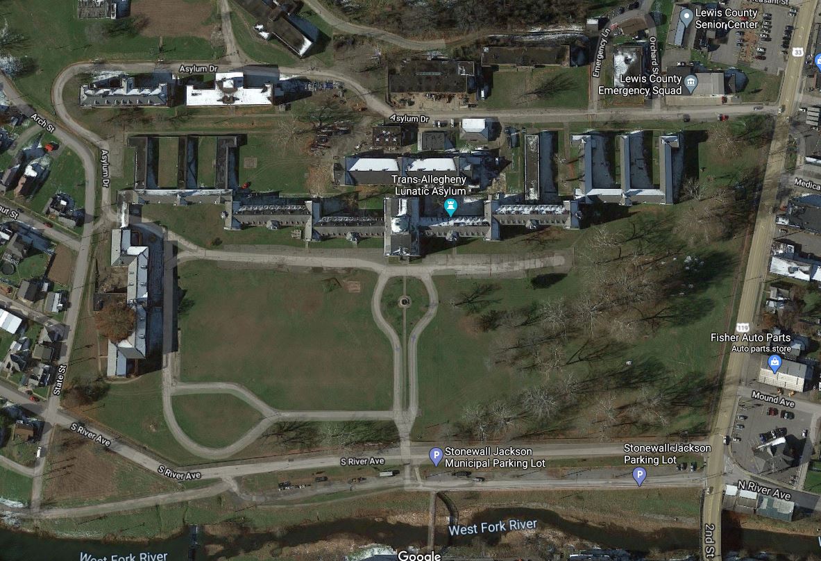 About 100 miles northeast of Charleston, WV, in the town of Weston, is the former Trans-Allegheny Lunatic Asylum. Originally known as the Weston State Hospital, it was a “Kirkbride” psychiatric hospital that was operated from 1864 until 1994 by the government of West Virginia. A classic state institution of the time.