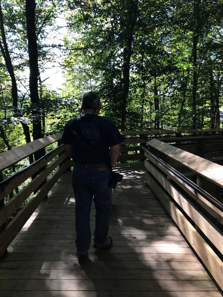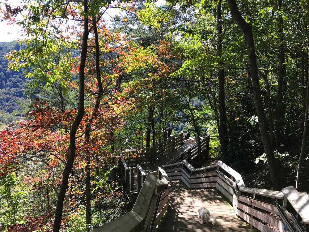 After we visited The Greenbrier we went back and picked up Jack and headed to the New River Gorge. My Dad had said it was a must visit while we were in the area and since he rarely makes those kind of suggestions I was determined to go. It was a 1-1/2 hour drive to get there, but since it was all scenic highway and the leaves are starting to turn it was fun. Unfortunately when we arrived we discovered the Visitors Center was closed, but they did have rangers outside answering questions and handing out copies of maps. Our park service is amazing.
