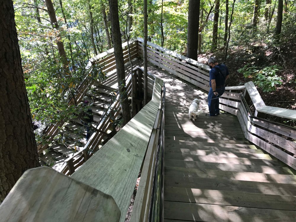 The first thing we did was walk on a paved path to an overlook. The views from there were just OK so we decided to walk the 136 steps down to better views. I loved the sign at the entrance to the stairs.
