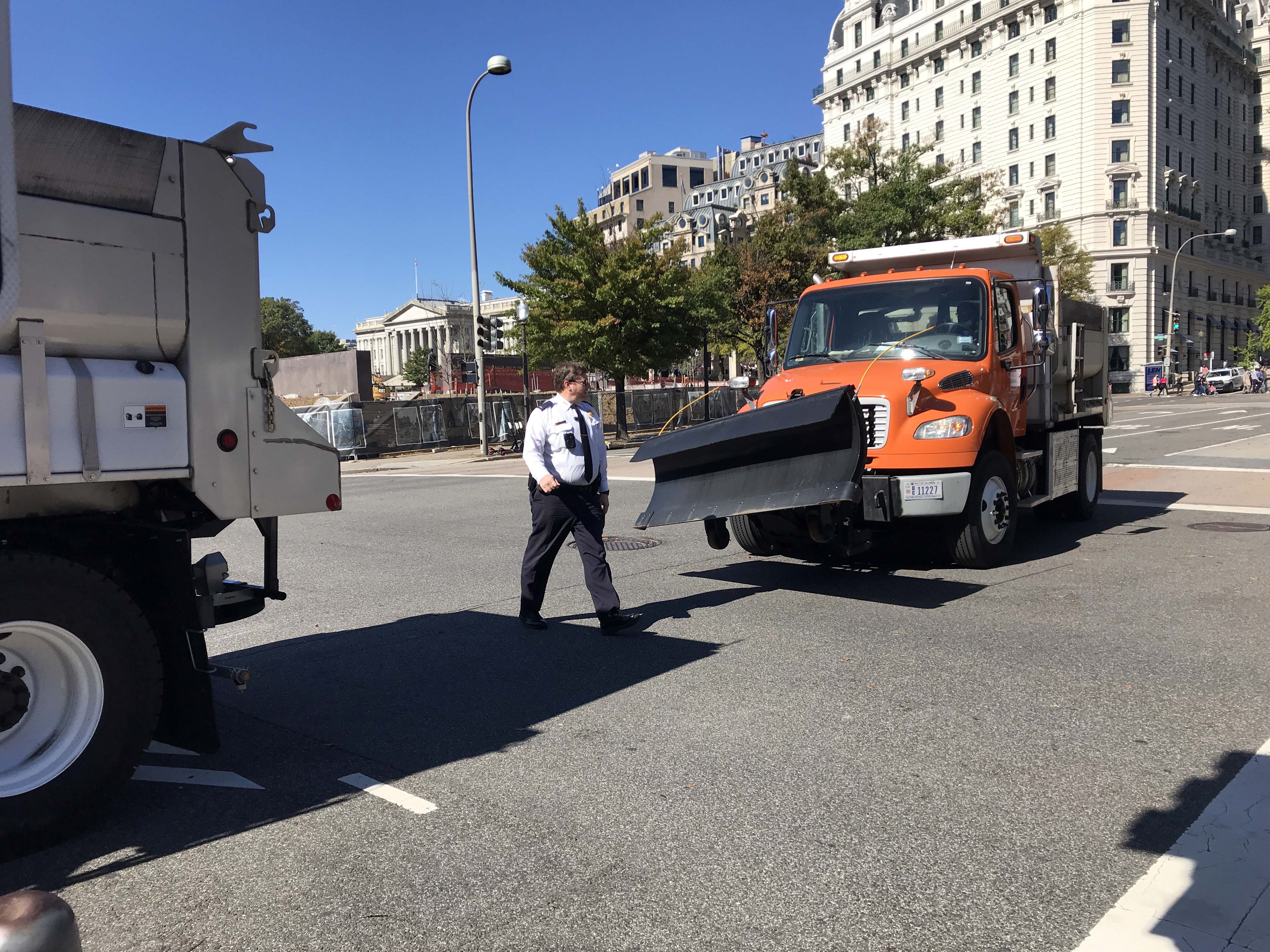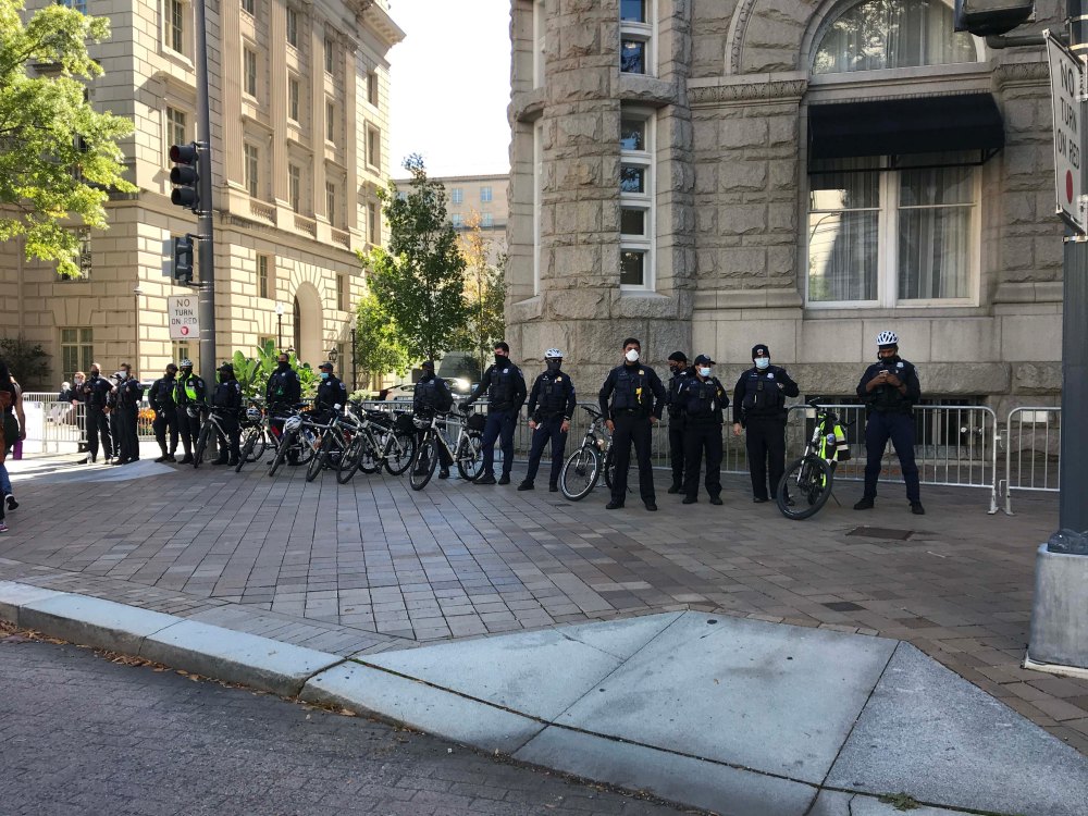 There was a line of city police at another Trump building.