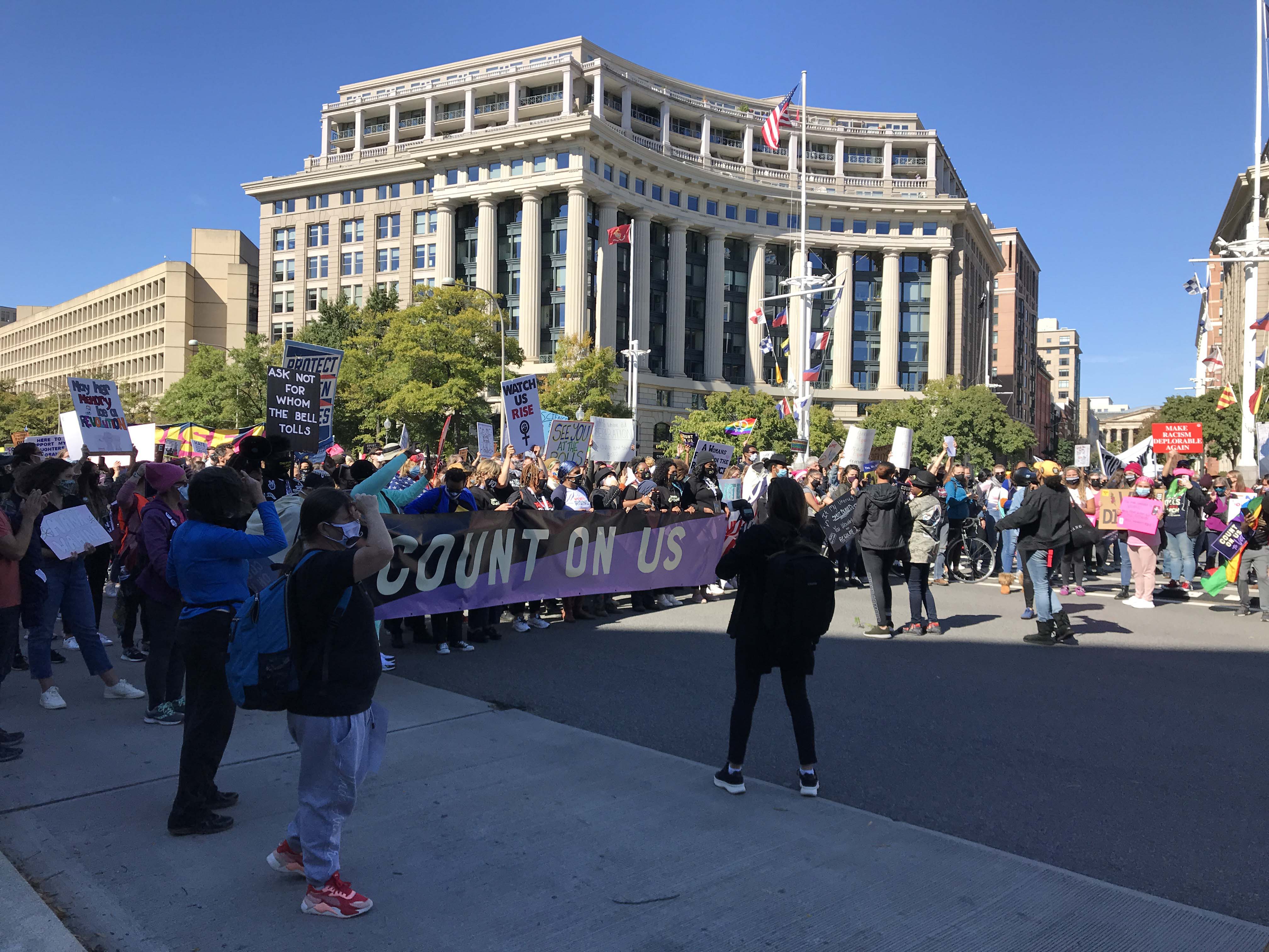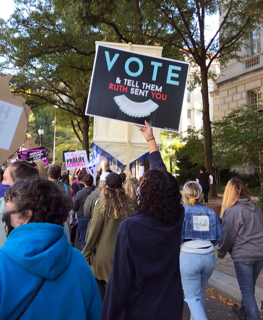 It’s also important to note here that I have never publicly protested anything in my life.  I have never stood on a corner, or carried a sign and until recently did not consider myself a particularly political person.  This year my three daughters have inspired me with their participation in various protests and when my oldest told me about the event I decided to get more information.  Ultimately I decided to attend because I thought the best way I could honor RBG was to participate in my first march.  At the same time my daughter, son-in-law, and grandson were at a sister event in Charleston.
