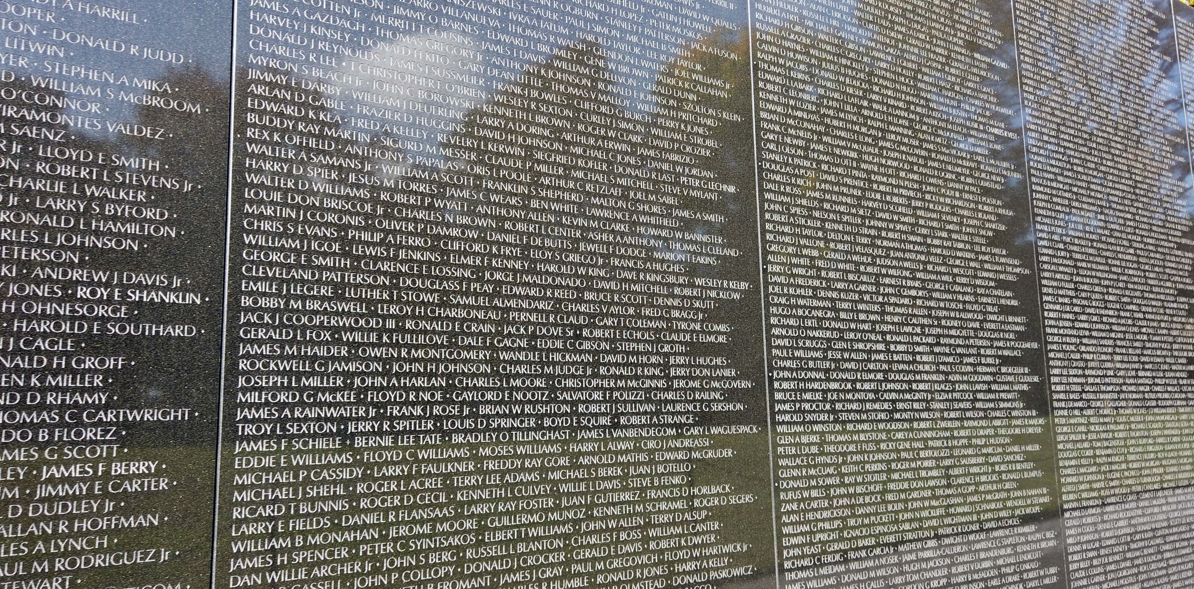 Northwest of the Lincoln Memorial is my favorite, the Vietnam Veteran’s Memorial.
