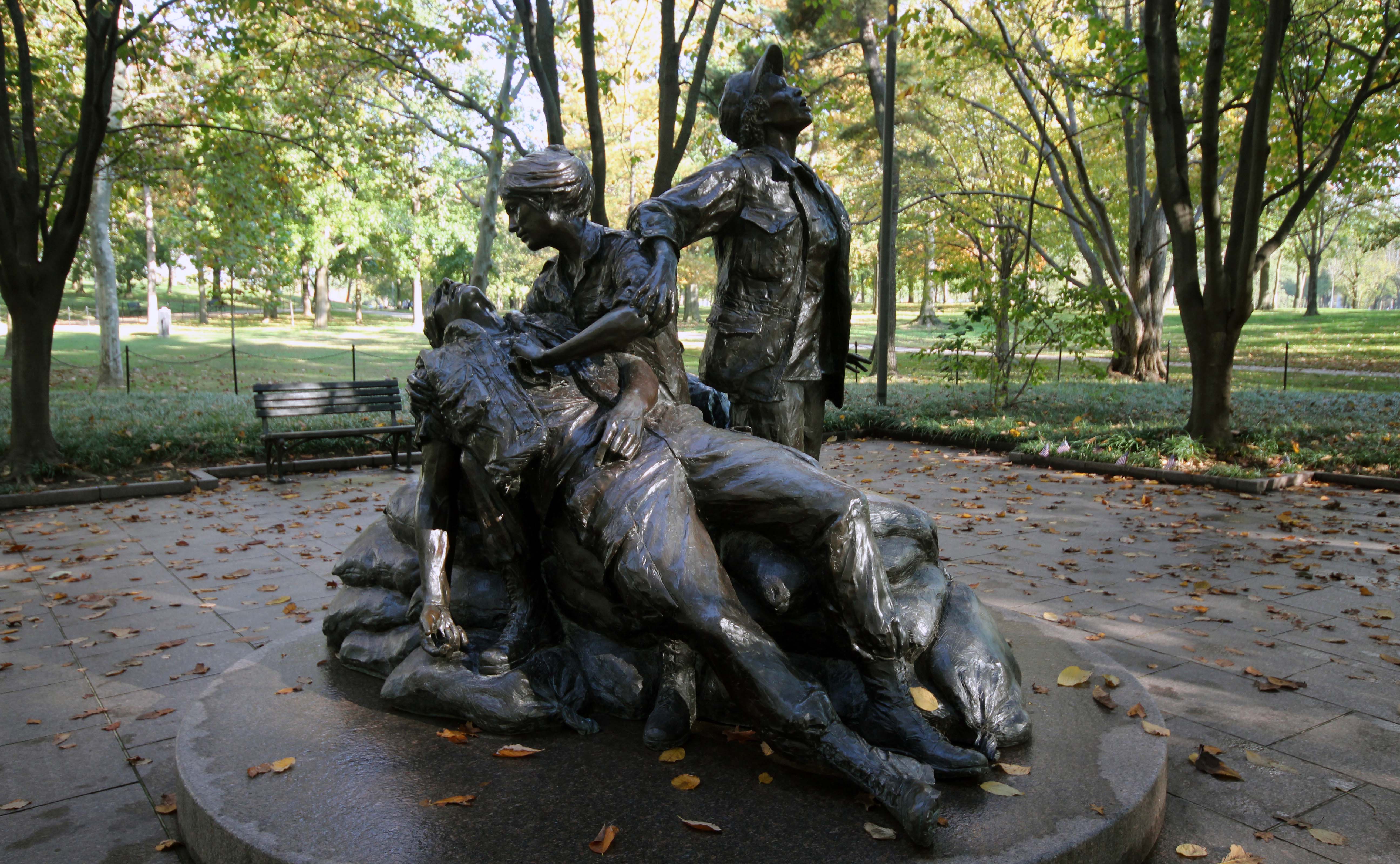 And a little farther down the path, the Vietnam Women’s Memorial. I like these two statues more than the wall itself, because they are set off in the distance with benches so you can get away from the crowds’ I struggle with the wall because there are just so many names, it’s overwhelming. The sun beats down, and I want to read and think about every one of them, and I just can’t. It’s too much.