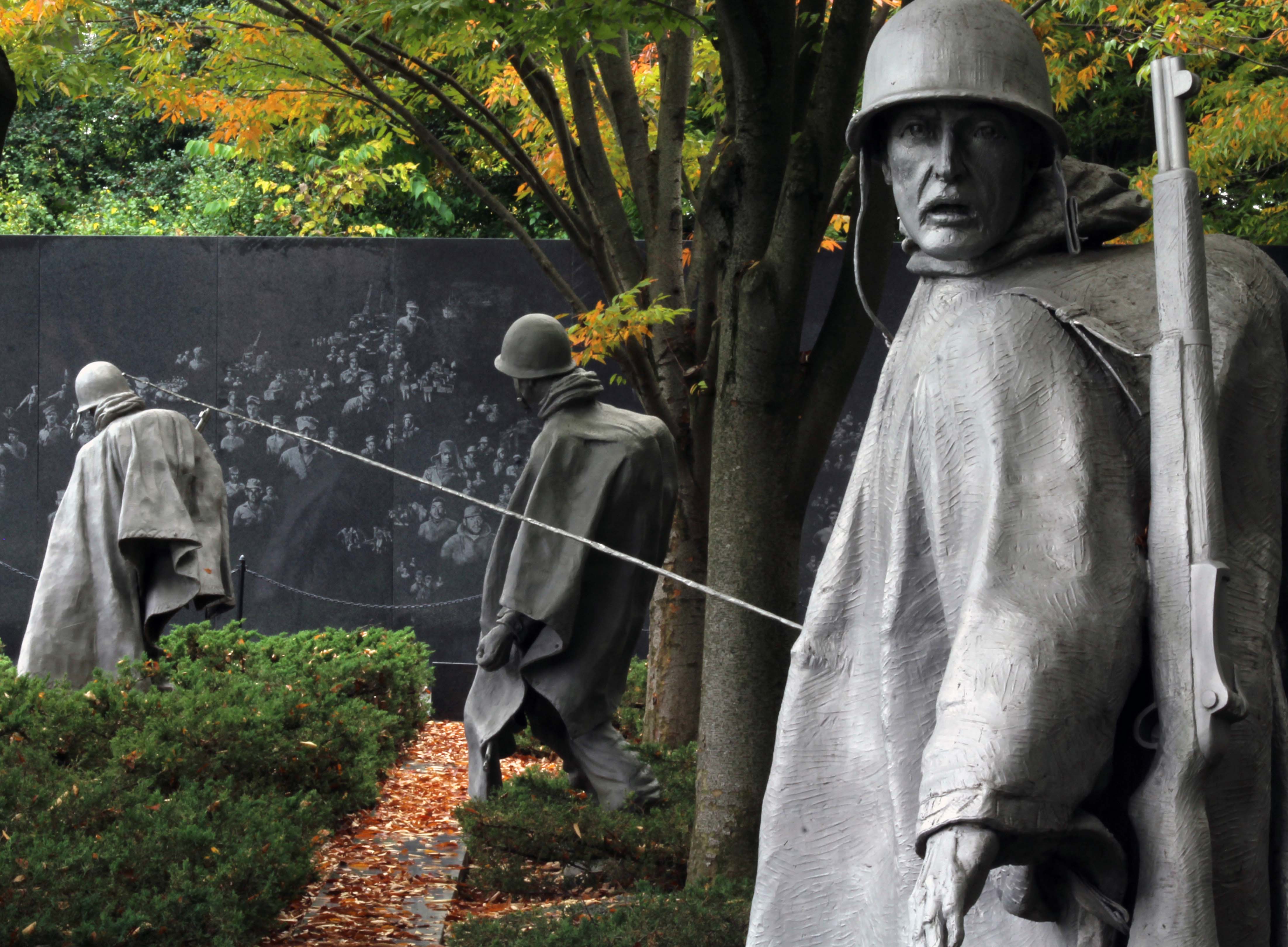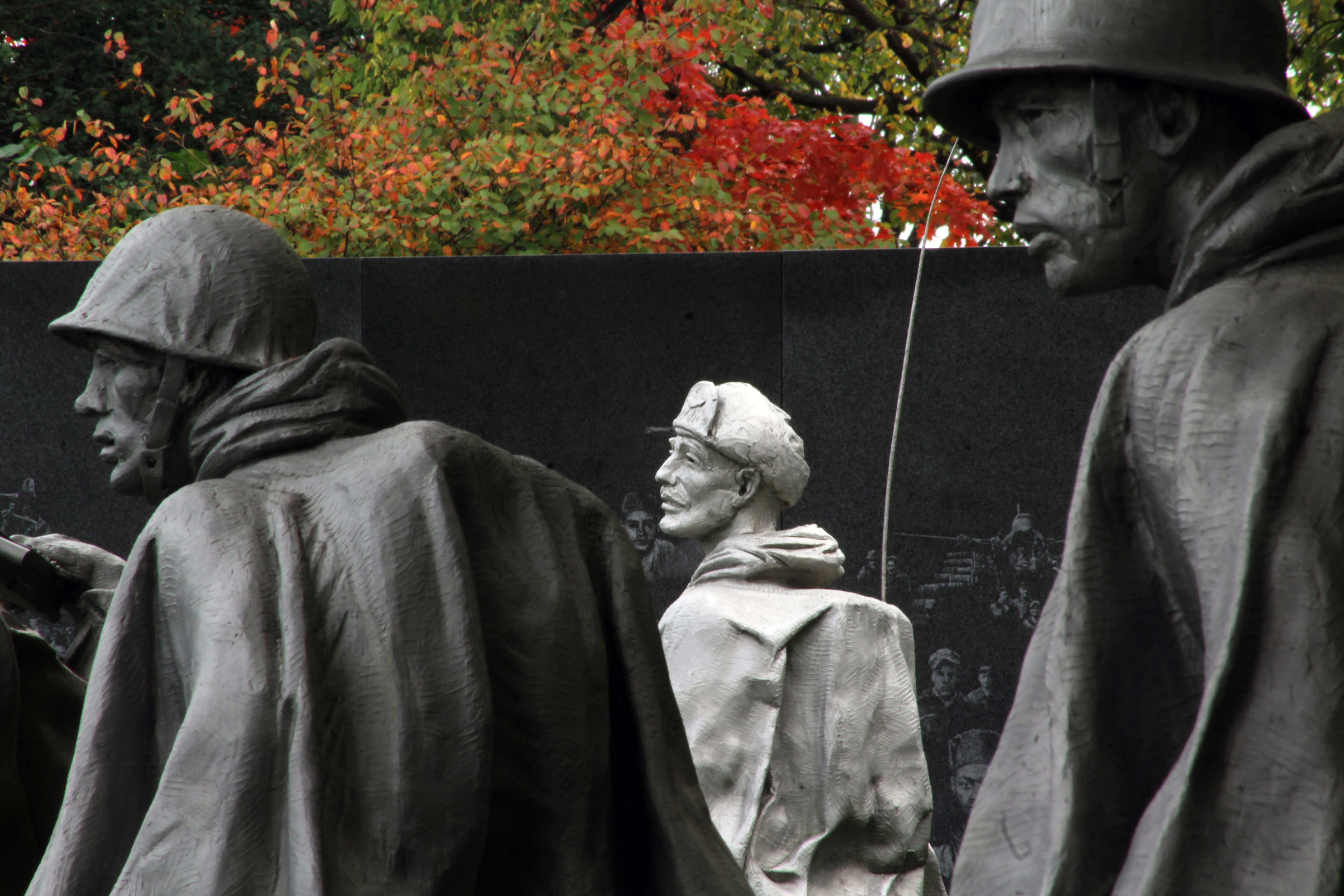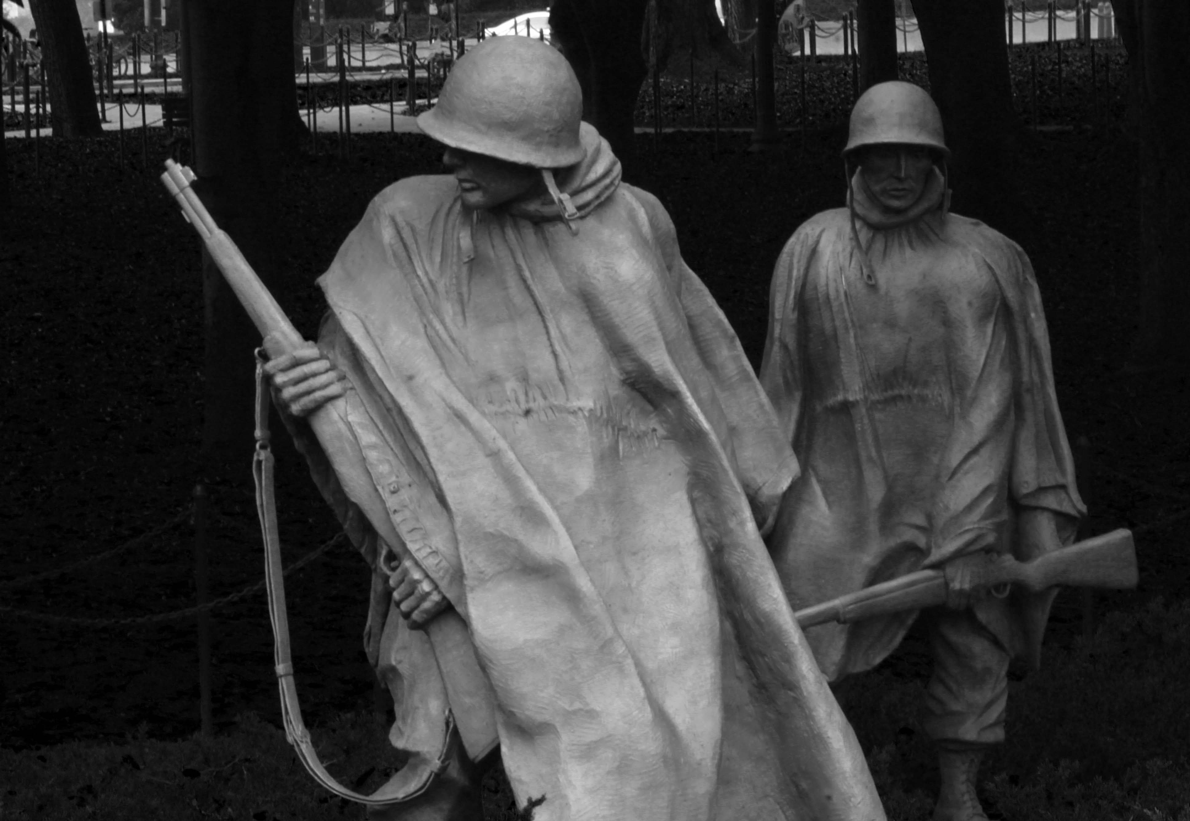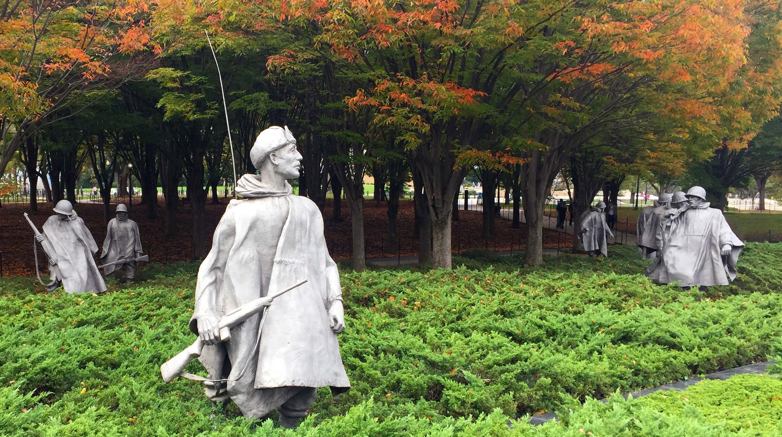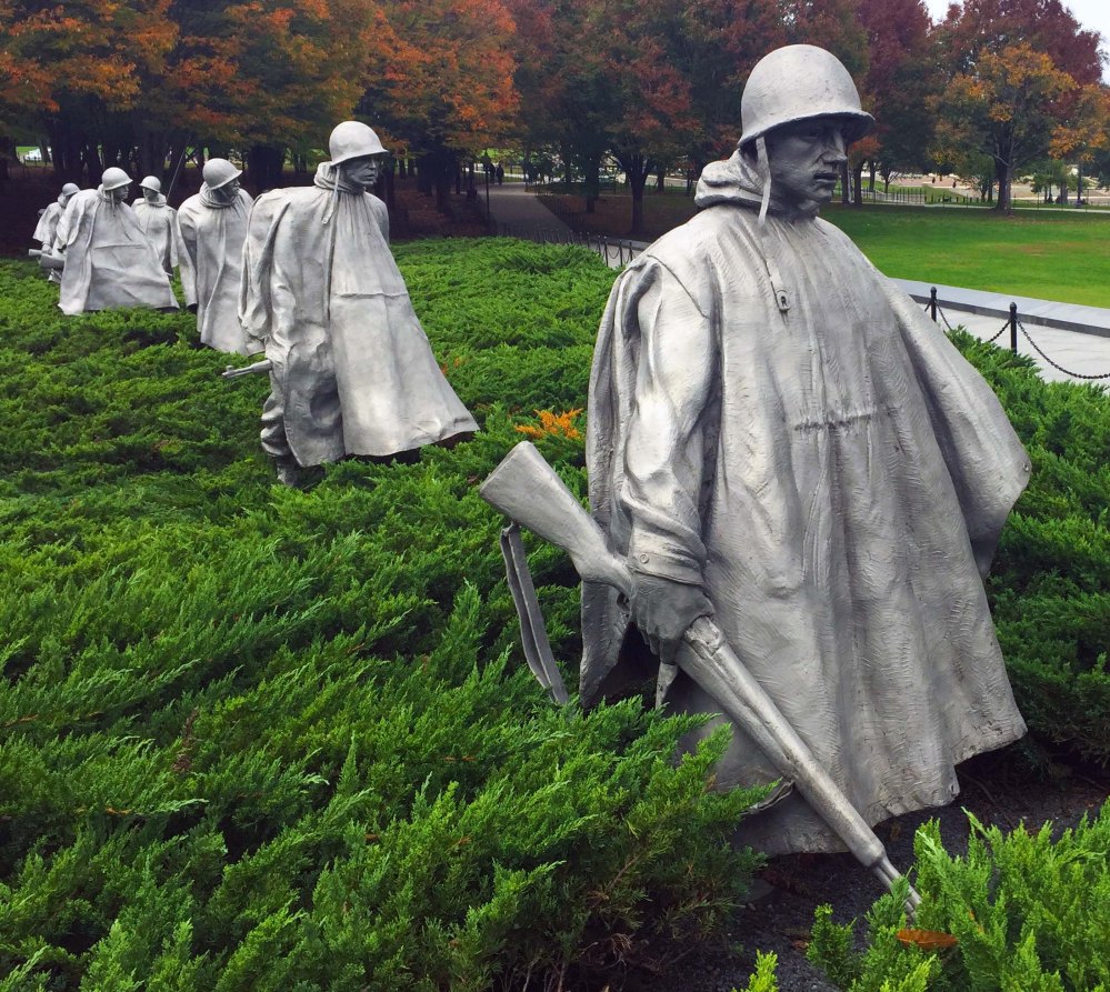 On the south side of the west end of this area the first thing you come to after the Lincoln memorial is the Korean War Veteran’s memorial, my favorite.