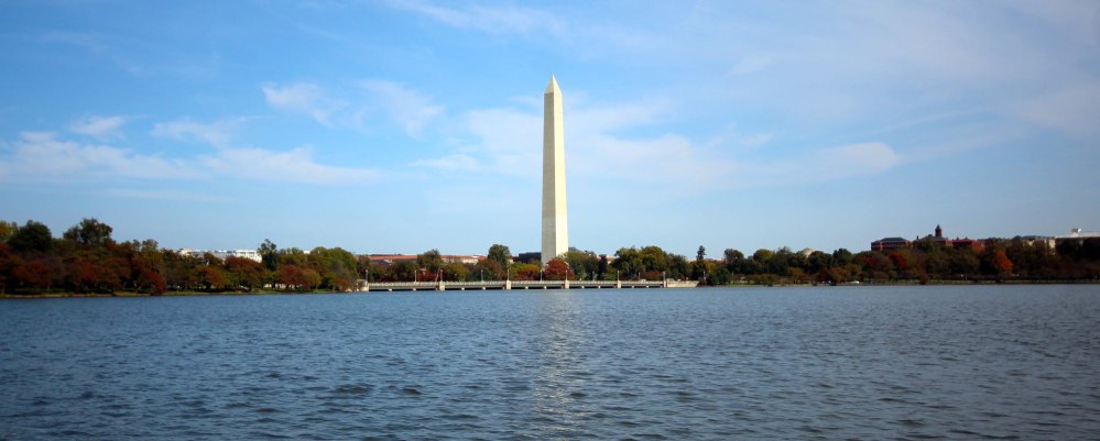 At this point you can either jump onto West Basin Drive, or the walking/jogging path that runs right along the edge of the tidal basin. I went along the path, because there have been lots of movies and TV Shows filmed along that path due to the great background view as you curve along. And as I said before, the Washington Monument plays hide and seek everywhere you go.