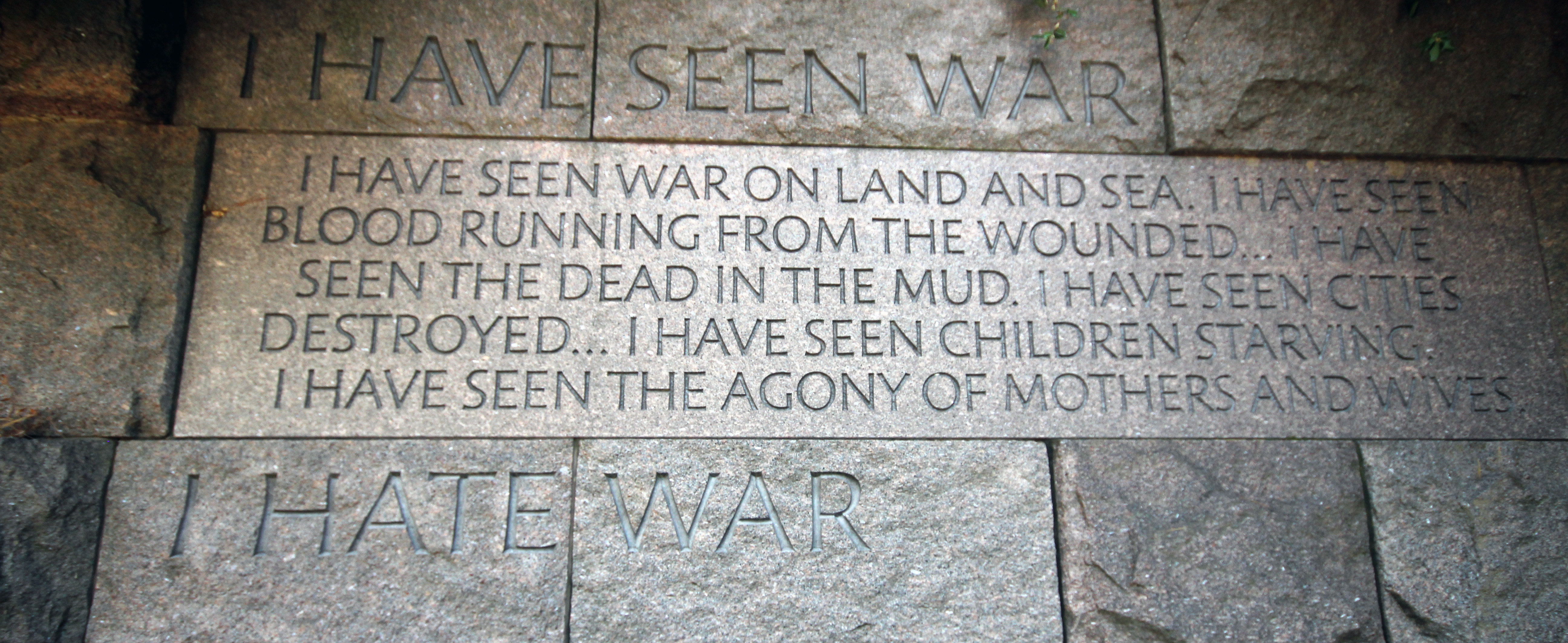 This is my personal favorite memorial (the Jefferson Memorial in full cherry blossom bloom is my favorite).  I was going to make a special trip down to D.C.  just to see the FDR memorial again, but when I heard the water was missing I decided to pass.  That truly is what makes it so special imho – Trace