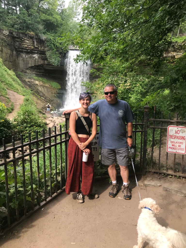 We didn’t all make the choice to stay in place.  After much soul searching Kelly and Bill made a beeline to Pennsylvania where they had booked a seasonal site and would be close to their kids and grandchild.  We were sorry to see them go but understood why they would take that risk.  We ended up staying largely because Lee was concerned about his health.  As long term smokers we were both higher risk, but adding Lee’s heart attack to the equation made him truly believe if he caught it he might die.  I wanted to be closer to Kyrston of course but they were both working in restaurants and were running the risk of getting the disease themselves.  There were no good choices back then, so everyone just made the best decisions they could with the information they had.  Things were complicated by the fact that for the first time in my life I was put on furlough and although I was grateful to still have a job the pressure of doing five days of work in a three day week was very intense. After monitoring the situation closely, and considering it every day for several weeks, Lee finally decided to not go to his summer gig.  There was no way he could avoid the public in the job he was given and after talking to Cori and Greg we decided to stay.  It’s worth saying again that Cori and Greg were amazing.  It can’t be easy having guests for five months, but they were more than gracious and treated us like family.  After that experience they are my family, but my Midwestern sensibility never let me stop worrying about making sure were weren’t taking advantage.  I know its silly, but those of you from the Midwest will understand.  The absolute worst part of that time was Greg and Cori lost Hobie and although I was glad we were able to be with them at such a difficult time it had a deep impact on all of us.  Hobie was a larger than life little figure in many of our lives, and watching him pass, even with dignity and love, was heart wrenching for all of us.  Greg in particular took it hard and seeing his pain was so very difficult. Jack was also very upset for several days and kept looking for his friend which was also very sad to watch.  Brings tears to my eyes just thinking about it.  It was strange that in a world with so many people dying we would all be impacted by a dog, but anyone who is a dog person will certainly understand. Finally in July we headed north, making a conscious decision to try and take our life back.  There was no end in site with Covid but since by this time there was no safe place in the US we decided we would pick up our plans and head north to see our second daughter, Kat. Our original travel plans had us seeing her at the end of the summer, but we reversed the trip and decided to see her instead.  We haven’t spent much time with Kat during the last six years and took this opportunity to spend a month with her and her partner Adrian.  Just getting there was pretty challenging, but thankfully we found a nice place to stay with a decent monthly rate and over the next few weeks really got to know our daughter as an adult in her own environment. Coincidentally she lives very close to where the George Floyd murder happened, and the impact of that event was very strong for her.  The entire world was shaken by the event, but she was involved in the protests and her immediate neighborhood was affected being right in the middle of it all.  Together we had an opportunity to see the memorial on the site where it happened and seeing it in person had a deep impact on me. I was truly grateful I could be with my daughter after this occurred. As with most other people the stress of the pandemic, racial tensions, and work furlough was really getting to me.  Lee and I have been struggling in our marriage since his heart attack and one positive that came out of all of this was we decided to get serious about some therapy. Finding a counselor on the road is incredibly difficult but COVID actually opened some doors.  Many therapists were trying therapy in a virtual environment for the first time and we were able to find a therapist from Florida who was willing to take us on virtually.  Her home state mattered because therapists are only licensed in certain states and since our home address is Florida we started there. Thing were so challenging that we initially we were talking to her twice a week, but eventually we went down to one.  When you have been married for over 30 years there is a ton of stuff to unpack and like many couples we had multiple issues that we had never addressed.  We started working through them one by one and although the process has definitely helped us both it has often been painful.  I am not going to go into details but I will say it took some time for our therapist to really understand the unique conditions of our lifestyle.  Context matters, and we often had to stop and explain why our situation was a little different than that of other couples. One great example of that was when we decided to try a different way of traveling.  For years we had wanted to try moving more frequently, but jobs and family have largely stopped that from happening.  Now we had money and time and wanted to see what it looked like to make shorter hops and move every week or so.  For me, at least, it has been a mixed bag.  I do enjoy being closer to places I want to see and getting so many of my state stickers by staying in different states, but the stress of moving and finding campgrounds has not been fun. Part of that is I always need strong cell signal, and many more people are camping locally than they usually do because of COVID.  Campground availability (with strong AT&T signal) has been challenging and Lee and I spent hours upon hours planning our routes.  Those conversations were not always fun, but we hung in there and learned along the way.  We are also spending a lot more money with this travel style because we are largely unable to take ad