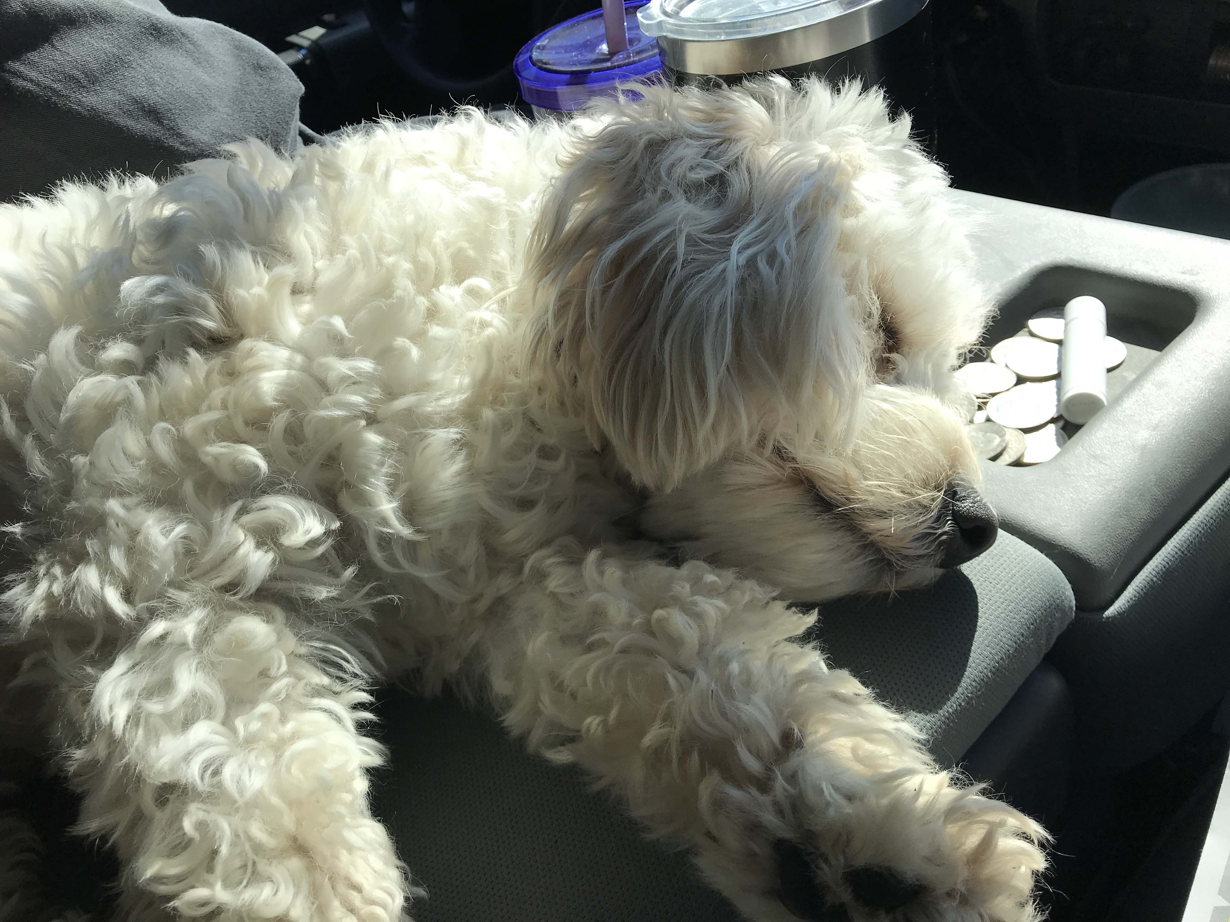Pooped Out traveling puppy