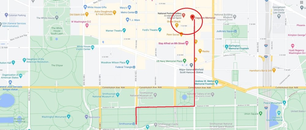 Well, sure, the Smithsonian American Art Museum, obviously. It’s a pretty building, isn’t it? This particular picture is from Google street view, that’s why it’s a clear day. I wasn’t about to stand in the middle of the street in the rain getting even more wet to take a picture, not even for a funny story. Here, let me help you out….
