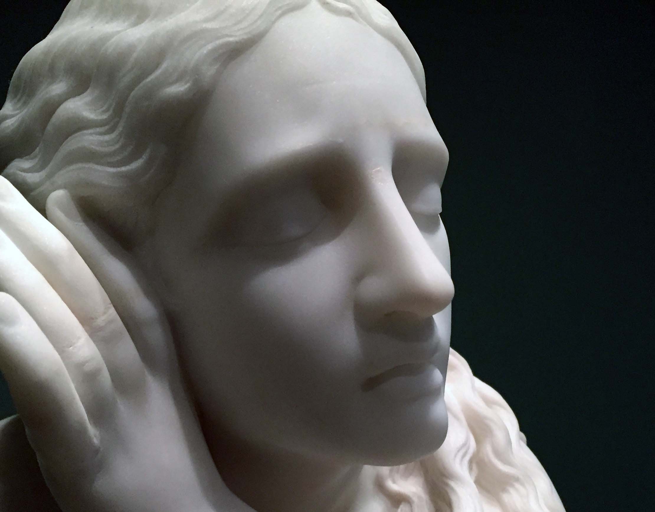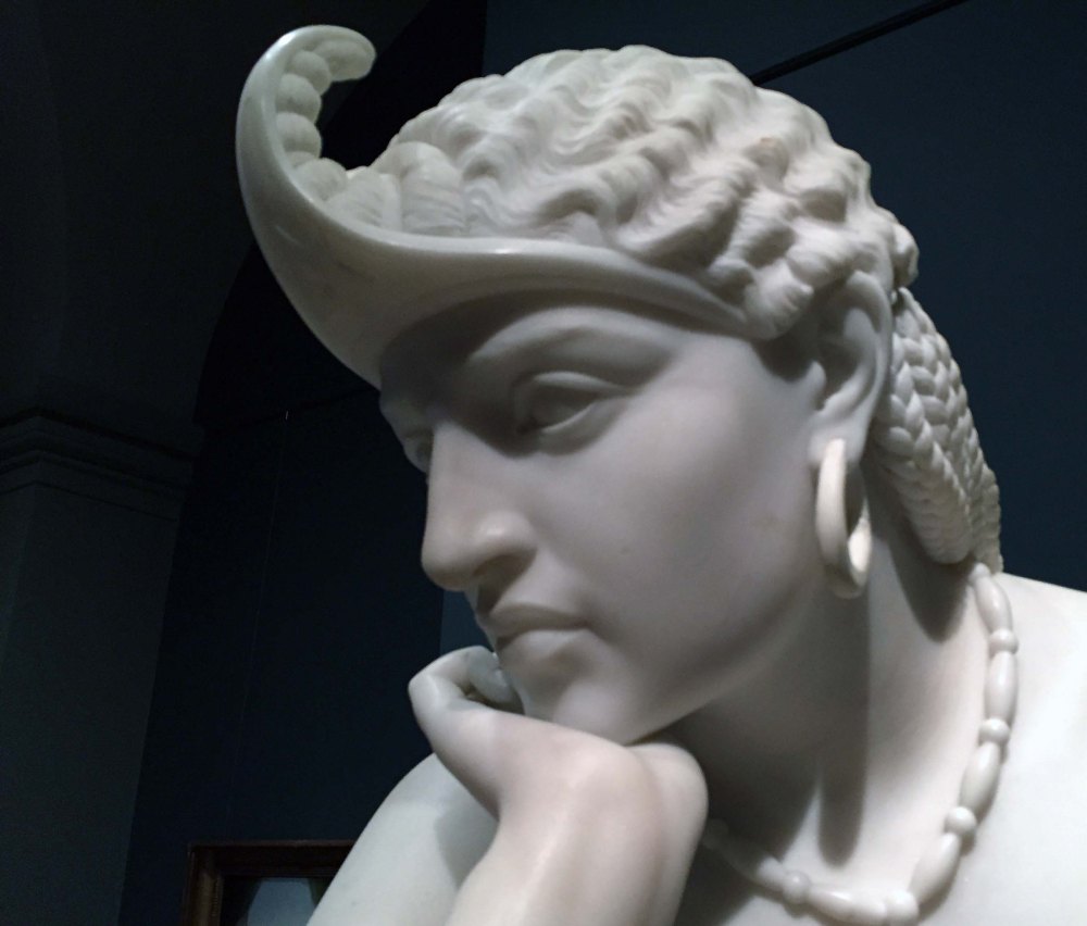 This is Cordelia, youngest daughter of Shakespeare’s King Lear. In the play, she battles to save her aging father’s kingdom. The Smithsonian used the face of this sculpture as the model for the mannequins used in the First Ladies exhibit at the Museum of American History.