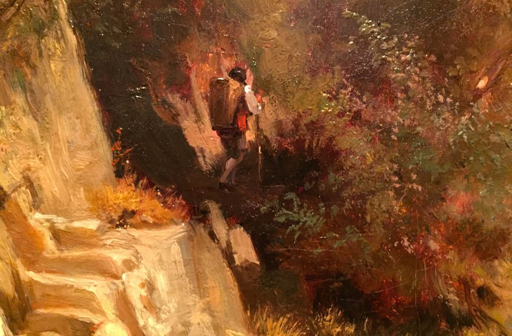 What I love about this painting is that I was drawn to the boat and the sliver of brightly lit water to the right, and then as I started to turn away, I saw this little person, and thought “I wonder where he’s going?”