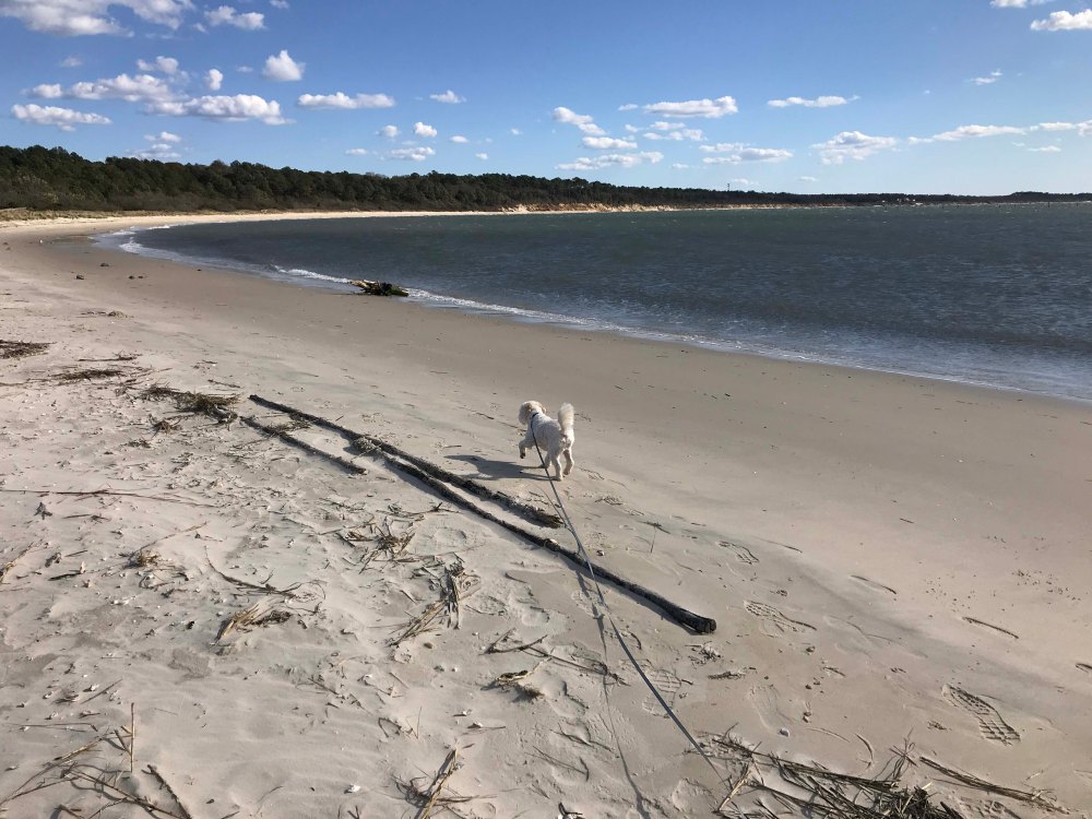 The last couple of campgrounds have been pretty great, but Kiptopeke State Park was in a whole other category. Yes, it is expensive at $50 a night, and in season I am sure it is crowded, but off season it was absolutely lovely, and our site was really great. Best of all it was a very short walk to the “beach” area and several boardwalks and I was able during work breaks to take short walks with the dog that were absolutely lovely. We also got a beautiful sunset every night which was very special.
