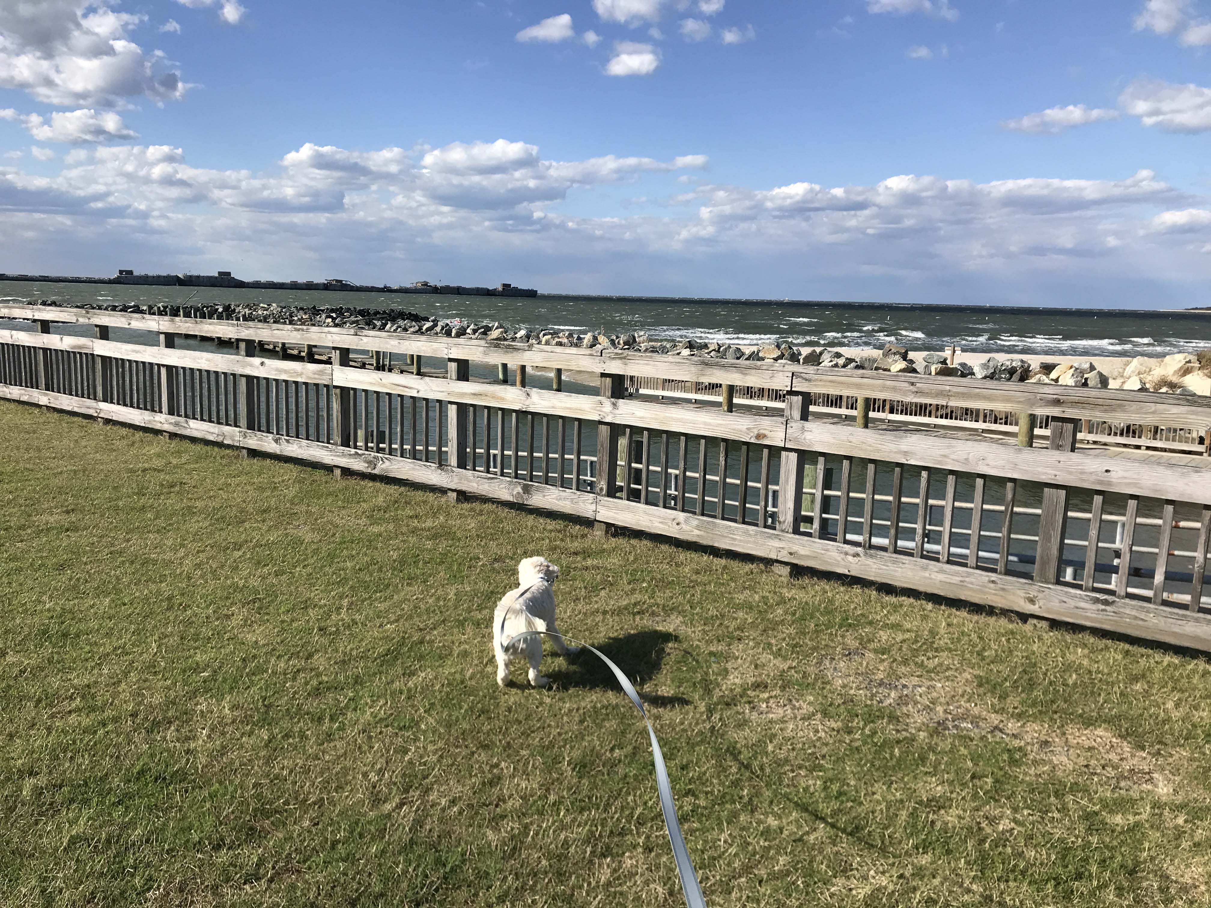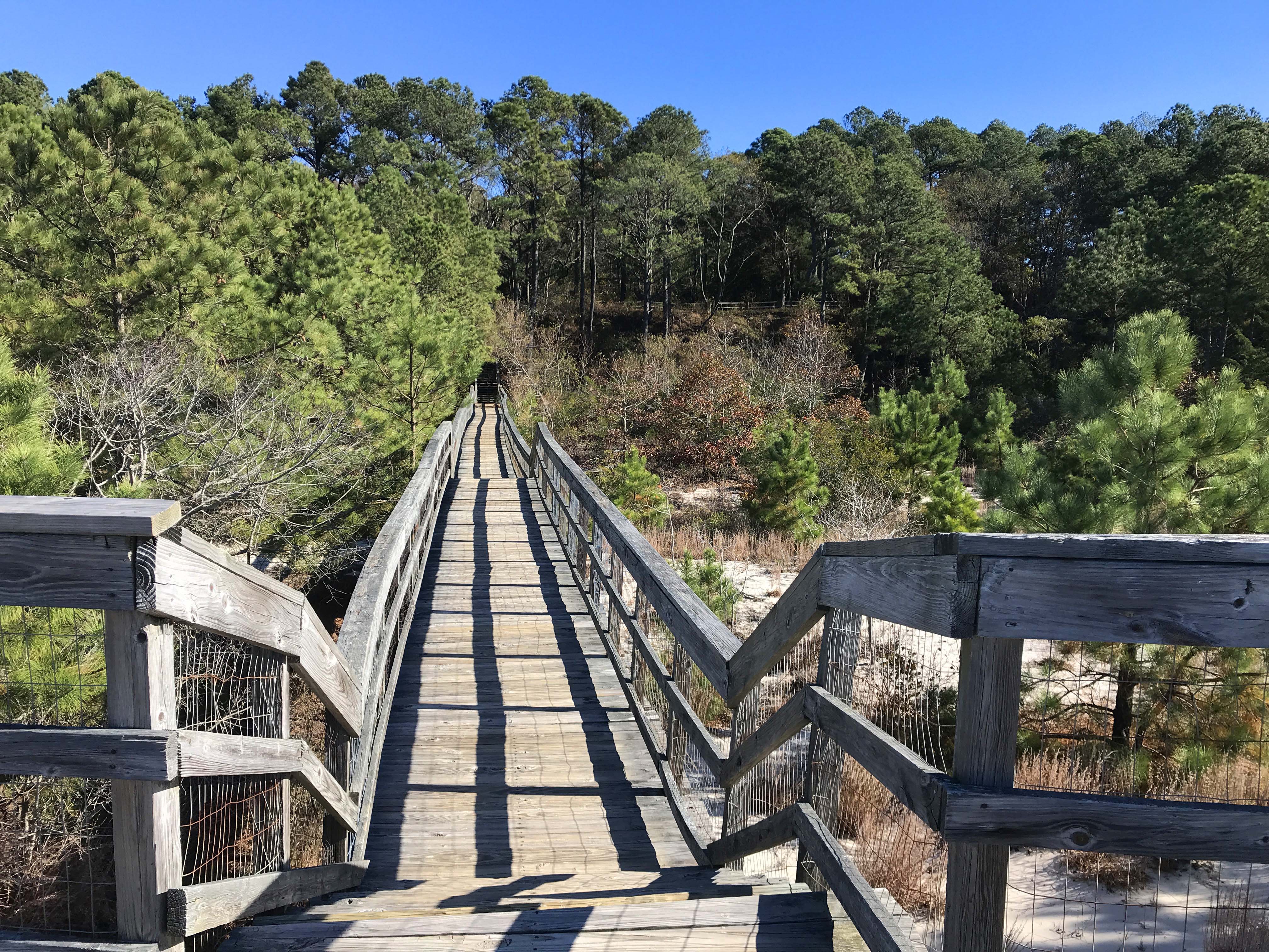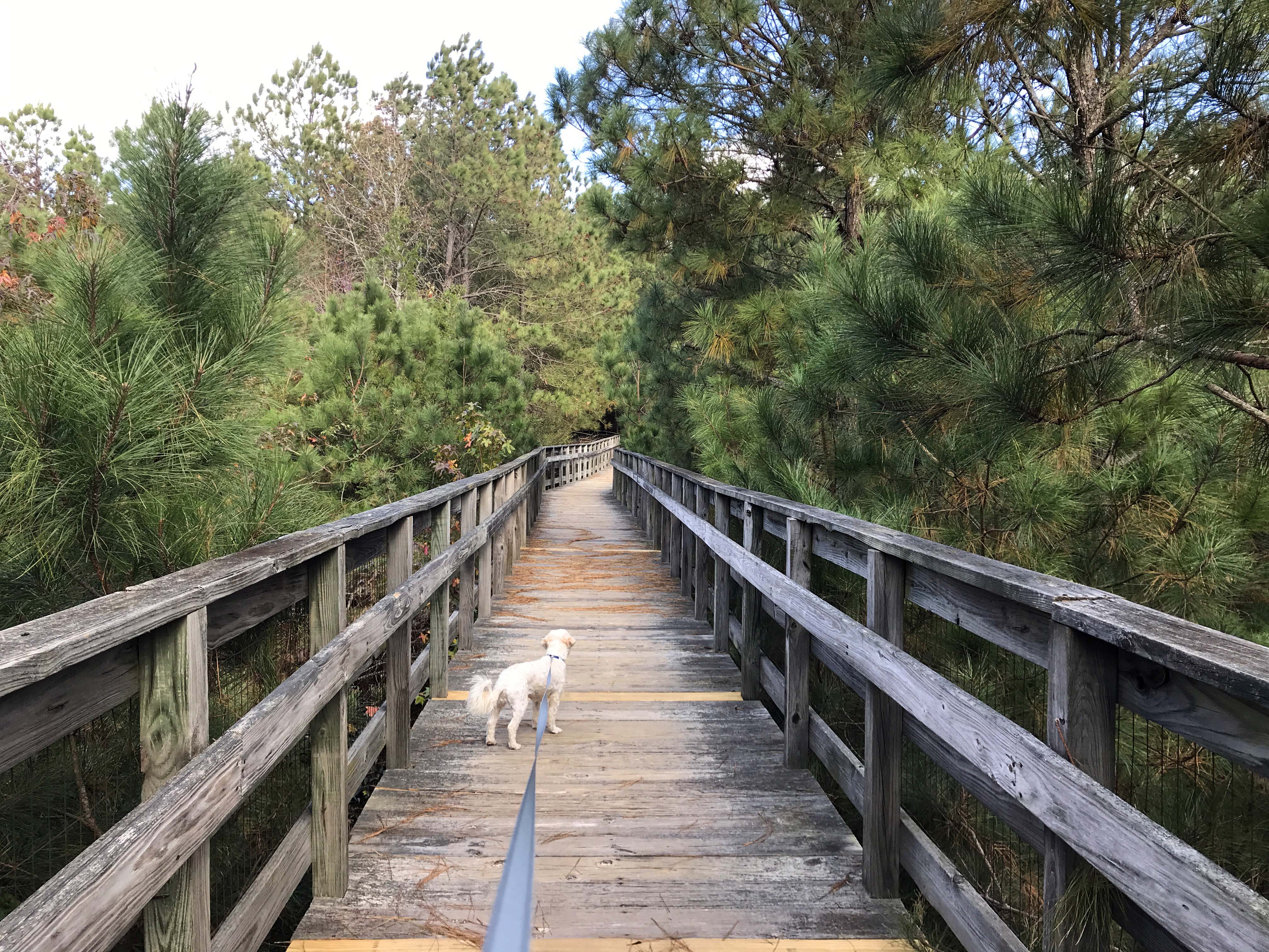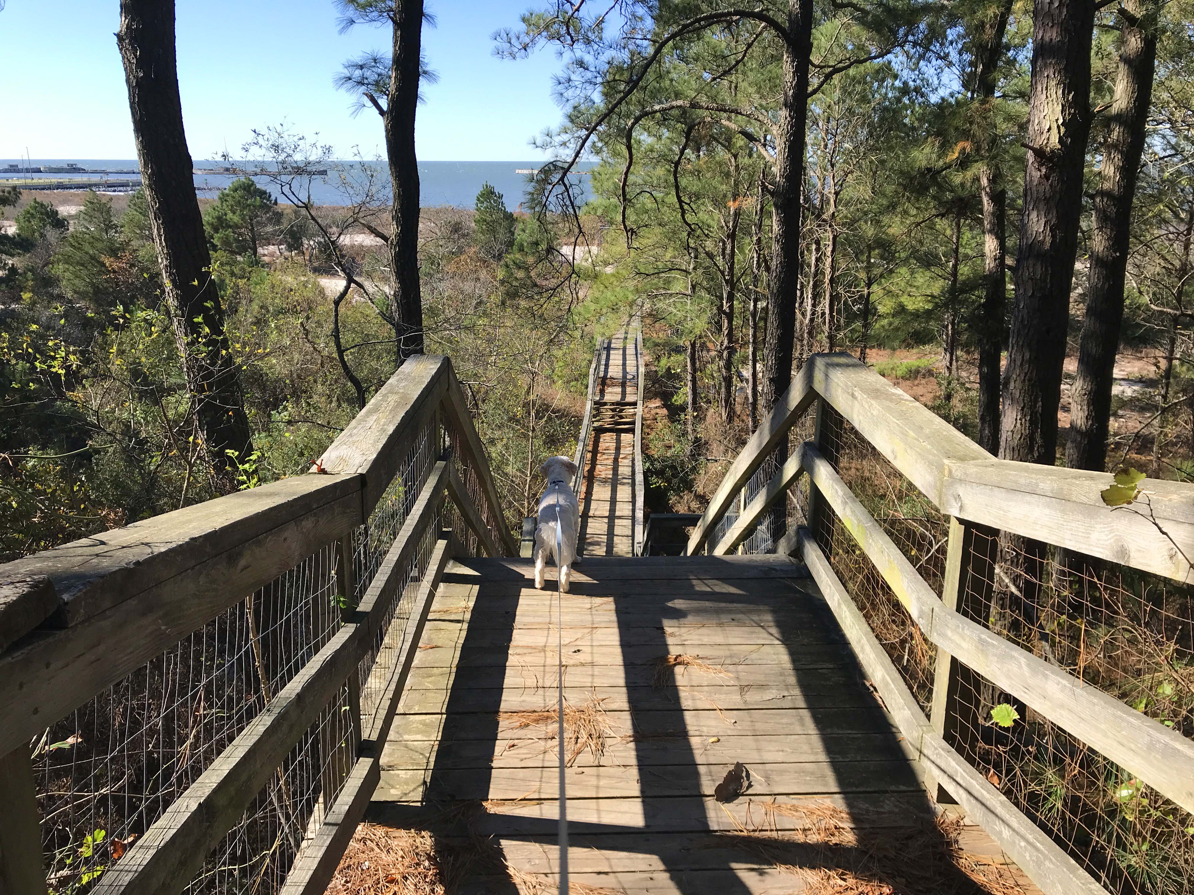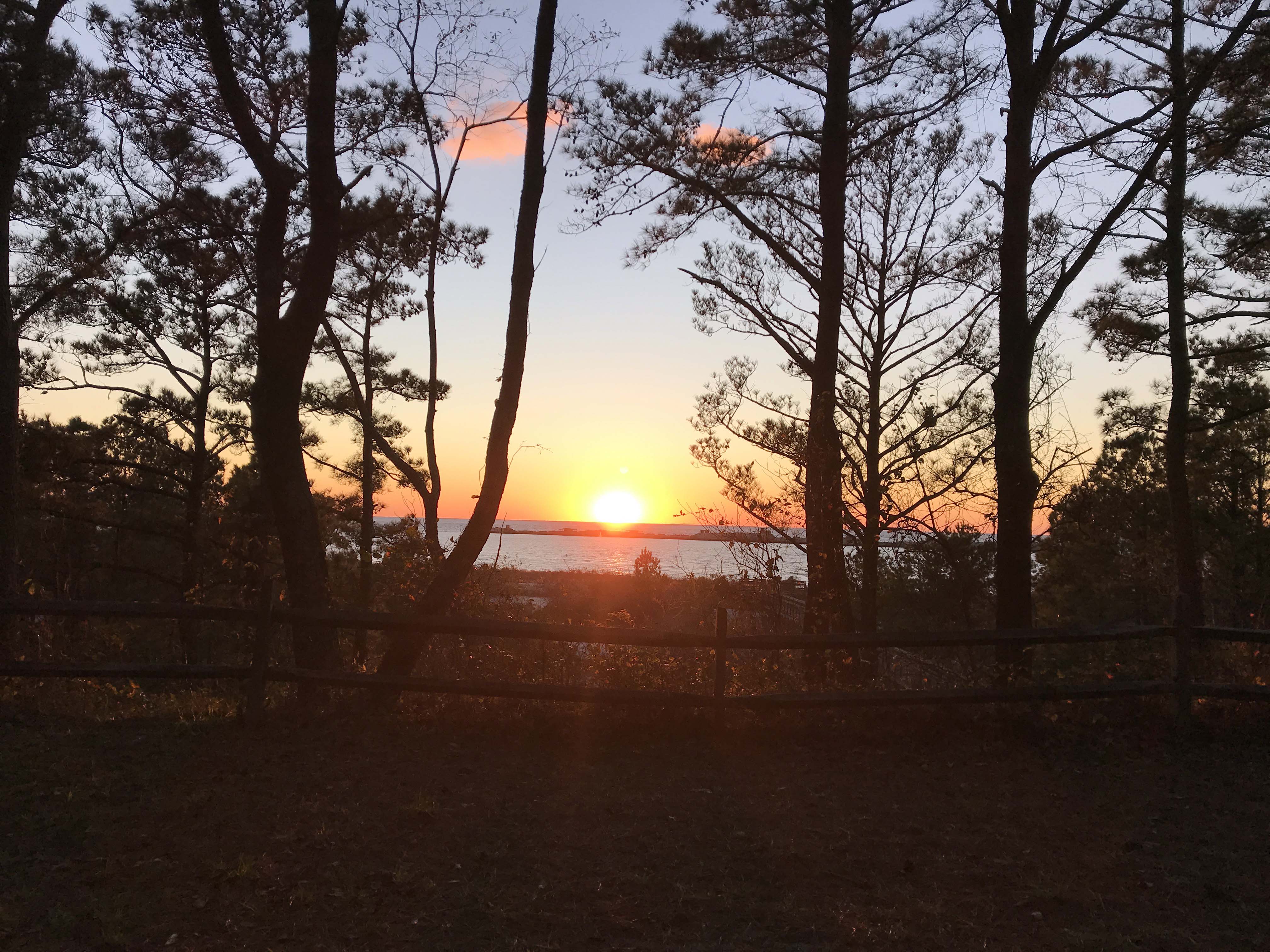 The last couple of campgrounds have been pretty great, but Kiptopeke State Park was in a whole other category. Yes, it is expensive at $50 a night, and in season I am sure it is crowded, but off season it was absolutely lovely, and our site was really great. Best of all it was a very short walk to the “beach” area and several boardwalks and I was able during work breaks to take short walks with the dog that were absolutely lovely. We also got a beautiful sunset every night which was very special.