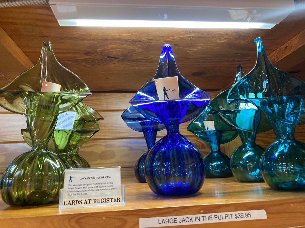 All in all I am really glad that we went and standing where the first Europeans stood gave me chills.  We have a complicated history though with this nation and it’s hard to think about the fact that those things were happening from the very beginning.  We all grow up with a sanitized view of how this country is formed and it isn’t until later that we realize that there were winners and losers in that story. One last thing, on the way out we saw a small sign for the original glass blowing house and decided to stop because we love glass blowing.  That was really neat and the shop was open and they were making traditional items inside.  I loved the little pitchers with the heart shaped mouths, but glass and RV’s don’t go great together so I gave it a pass.  Pretty neat though.