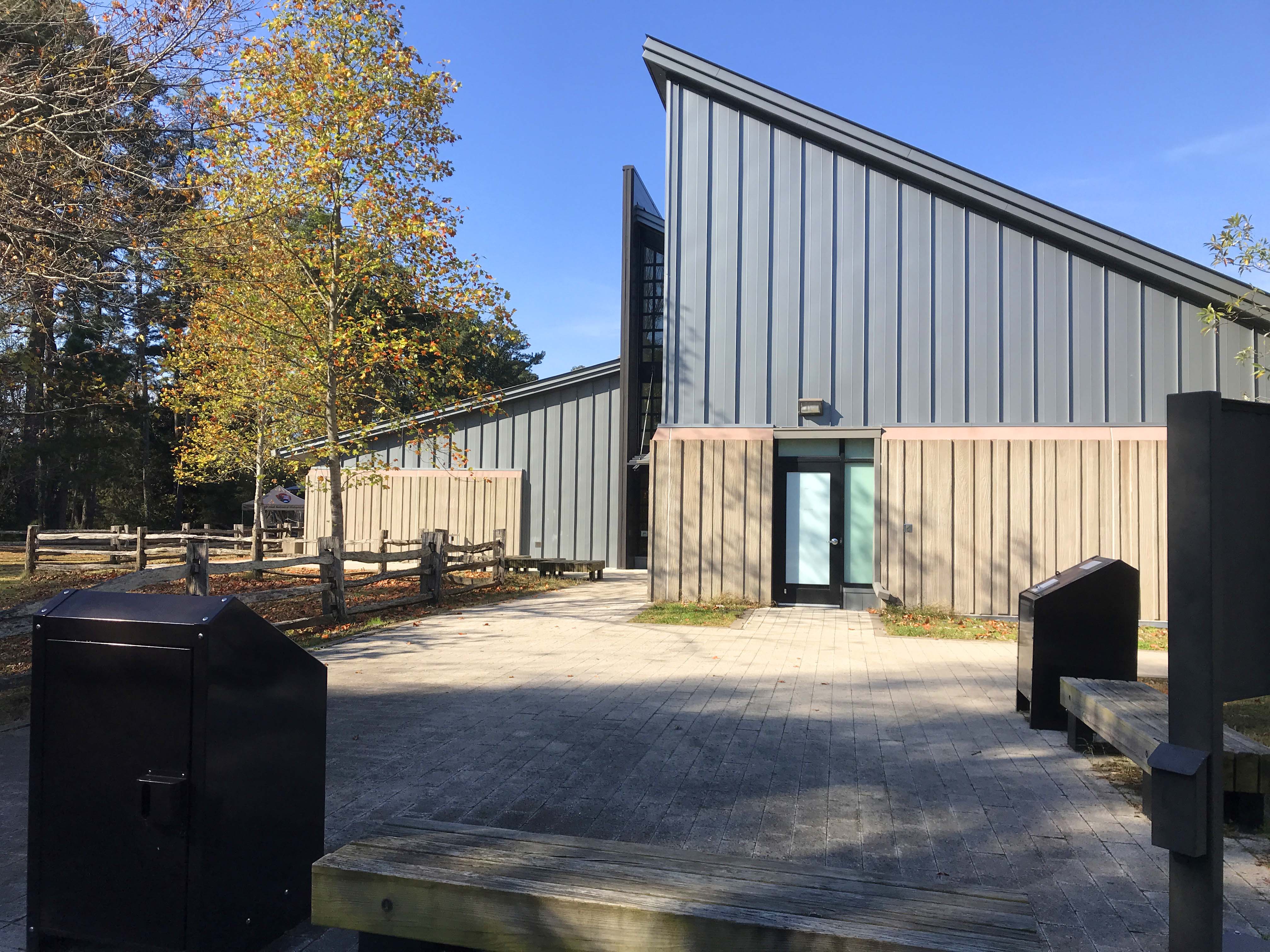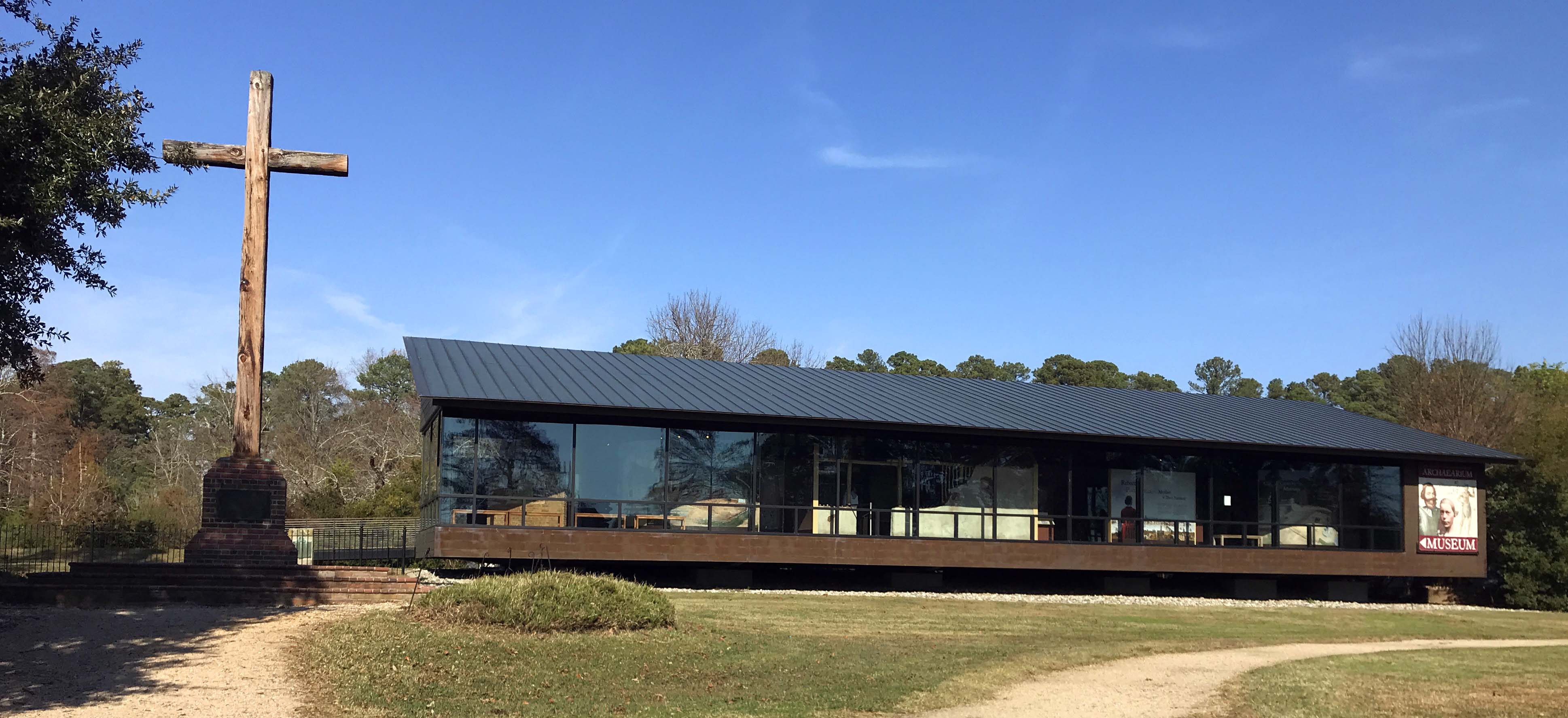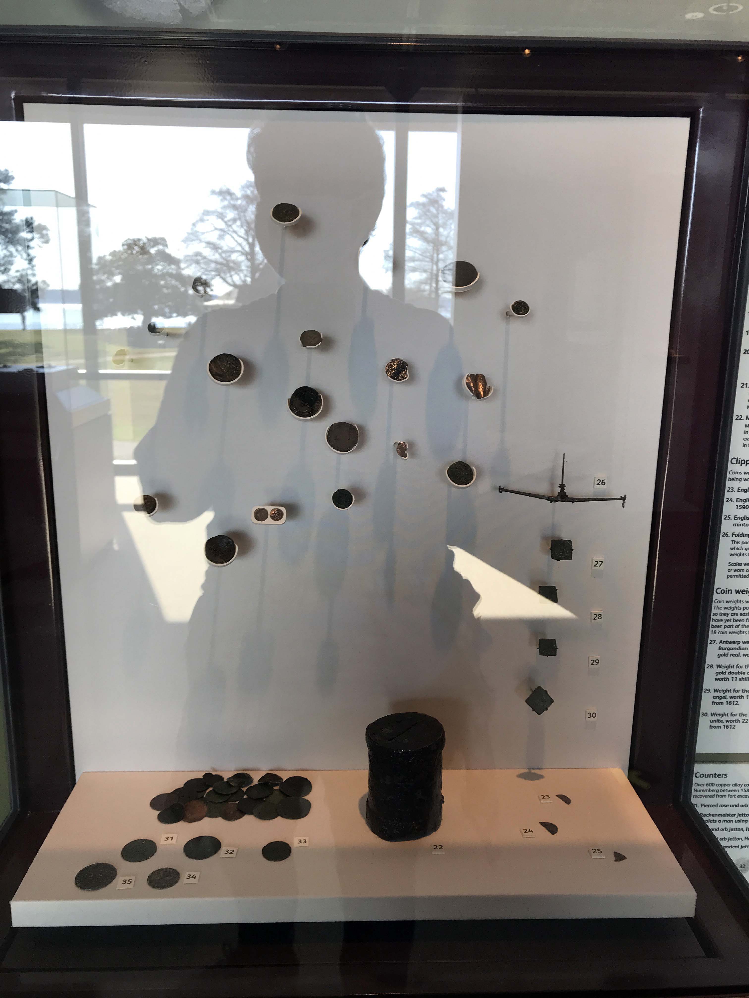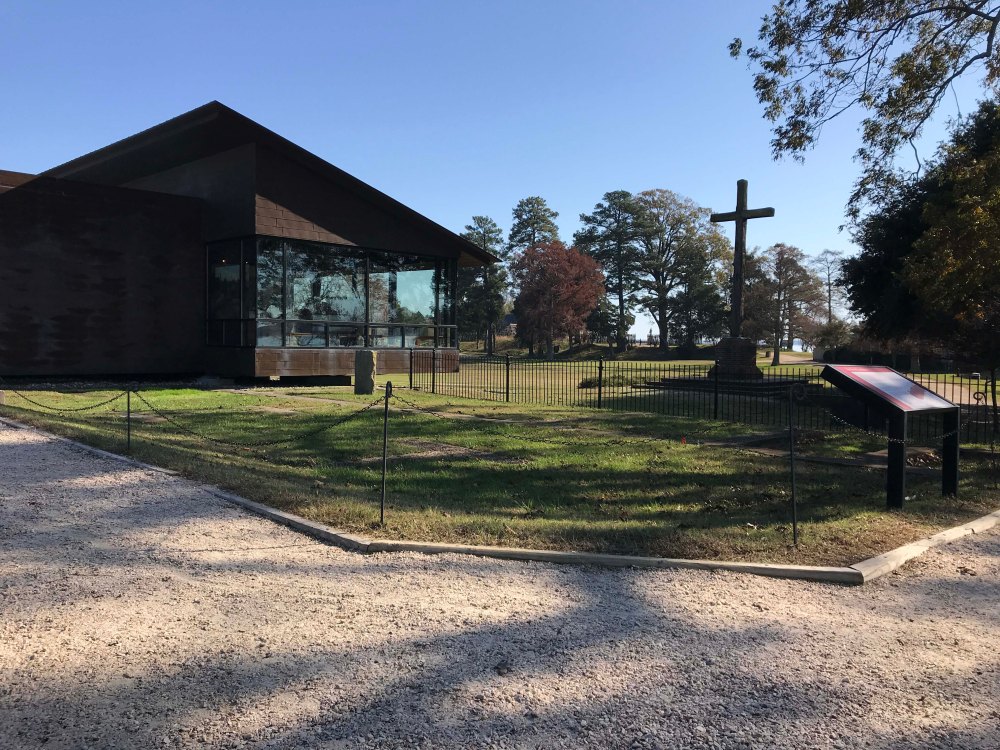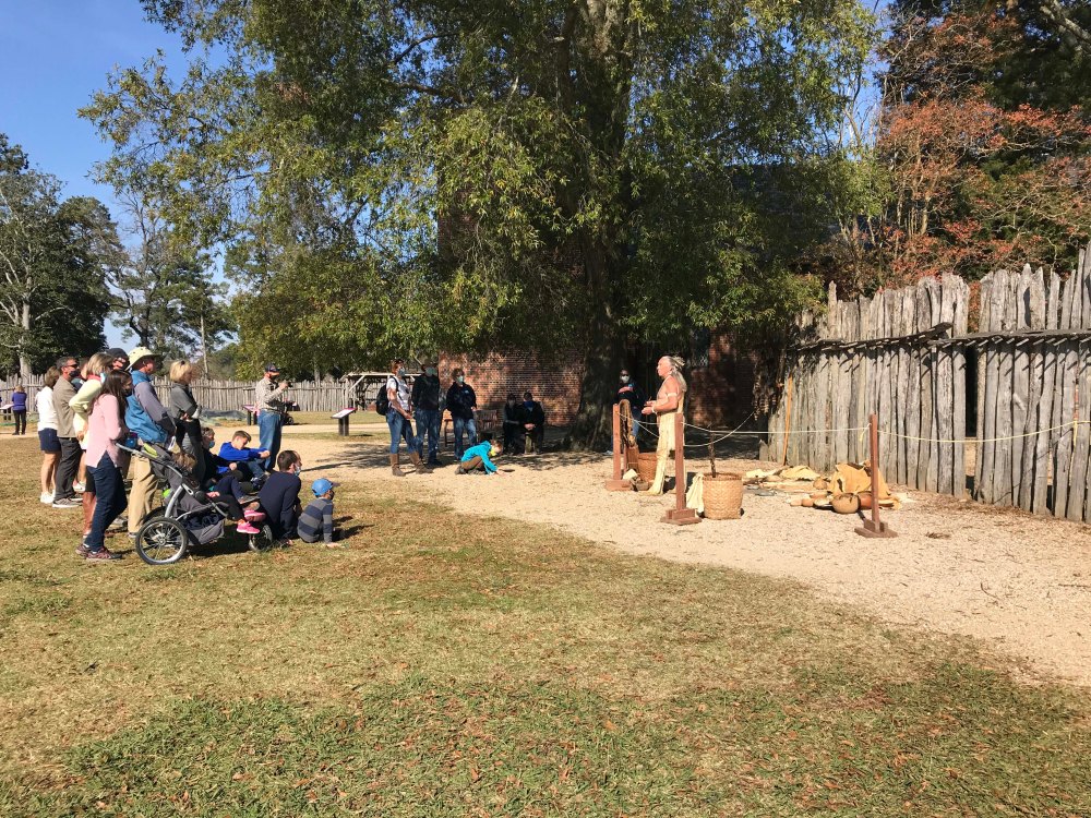 Because it was hard to maintain social distance in the fort area, we moved on to the museum.  This building has the artifacts they have found and Lee really enjoyed it.  No puppies allowed though so we took took turns going in and I have to say I didn’t care for it.  Almost immediately upon entering they had a skeleton of one of the original colonists and that bothered me quite a bit.