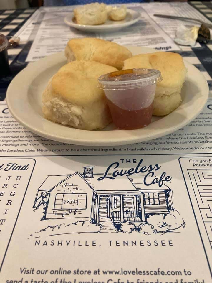 When we go to a new area we usually reach out to people and ask where are good places to eat and our friend Mark (and another friend, Jane, who you will remember from our stop in Omaha last summer) recommended The Loveless Cafe. Unfortunately we initially tried to go on a Sunday and the wait to eat was 1 hour and 45 minutes. That is not a typo, so I took an early lunch break on Thursday and we arrived at 11am. The wait was still 10 minutes, but we got in right away and saw immediately why the waits were so long. The restaurant was relatively tiny (smaller than a Cracker Barrel) and with such high demand we understood the wait times.