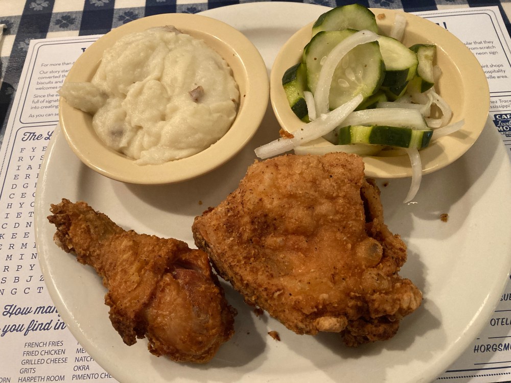 So the big question is always “Does the food live up to its press?”. I’m pretty tough on that, but I will say the food was different. All of the items tasted different than any other food I have ever had. Actually (and I could be wrong about this) it was like Cracker Barrel was trying to be like this café. The chicken in particular had a very distinctive flavor and crunch. Let me put it this way, we bought the instructions and coating for both the chicken and the fired green tomatoes. In all fairness it wasn’t 1-1/2 hour wait good, but if you can find a time slot that isn’t crazy crowded I definitely recommend it.