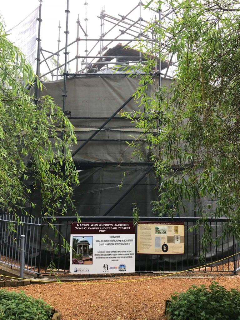 Because the tours were timed for COVID, we walked the grounds first. Unfortunately his tomb was completely covered and actively being restored but we were able to see the family graveyard and peek in.