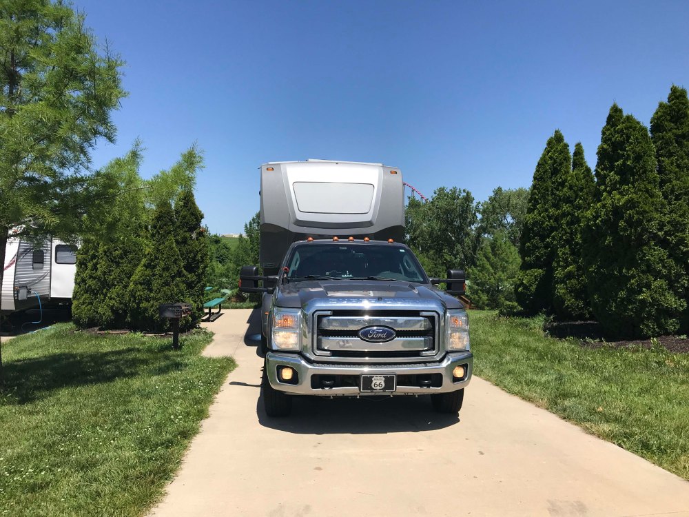 When Lee was looking for a place to stay in Kansas City, once again we ran into trouble finding places to stay near the city that weren’t booked. Ultimately he chose staying at the campground owned by Worlds of Fun Amusement Park and it turned out to be really nice, although expensive. It was so nice in fact that I would put it right up there with the favorite places we have stayed and even thought about going back and doing a joint vacation with the grandkids when they’re old enough, since they have really nice cabins as well.