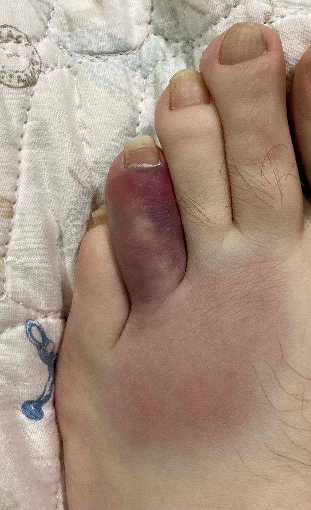 Lee talked about going with me, but he was on the fence , and then an accident happened. He hit his toe on the bottom slide piece of our closet and severely bruised it. Initially we thought it was broken, but when he got an X Ray it was just a really bad sprain, but as you can see from the picture he wasn’t up for walking anywhere. And really I didn’t mind. Going to theme parks by yourself can be really fun, because you can do whatever you want.