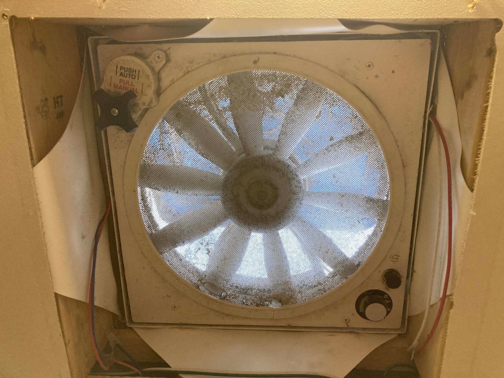 As stingy as I am with money, I did want to mention that spare parts and good technician work are absolutely critical in this lifestyle. I would rather spend money up front than deal with an emergency which ALWAYS costs way more. Since Danny was only able to help in the evenings after his day job, Lee also took the opportunity to finish some home repair projects. Being in the mecca of RV building has it’s advantages, because you can find almost any part you might need. Lee’s first project was to upgrade the fan in the kitchen to one with a remote control (we were using a broom handle to turn it on and off) and then moving the one that was in the kitchen to the bathroom, which we can reach. Finally he took the bathroom fan and put it in the living room where we only had a vent, but no fan. Having three fans going sets up a nice breeze and will hopefully will allow us to leave the air off and open up more often.