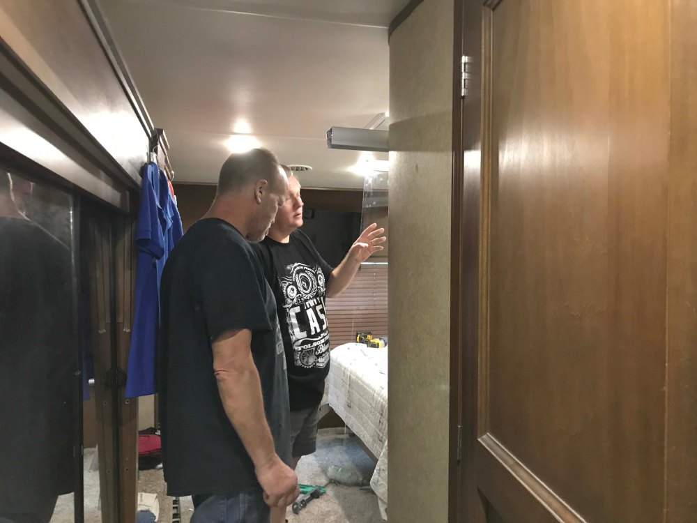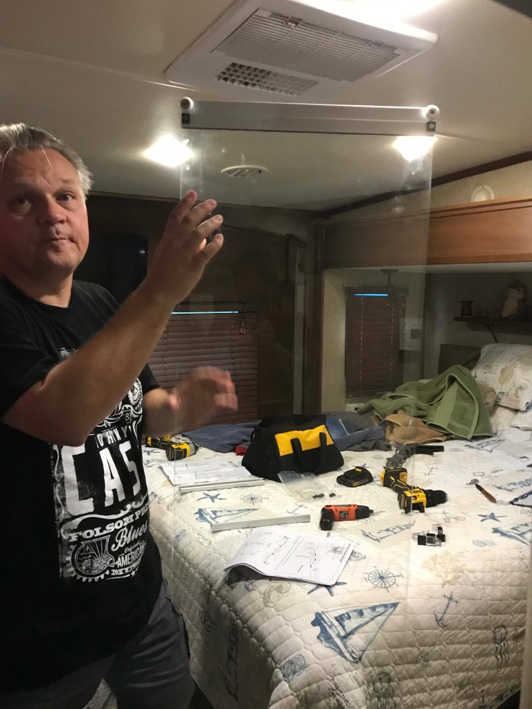 I am absolutely thrilled with the finished product and really grateful to Lee for taking this on. It was challenging and definitely outside of his comfort zone, but he made it happen and saved us a lot of money in the process!! The room actually seems bigger with the clear doors (the other ones were frosted) and of course less challenging to clean! By the way if you are in the Shipshewana area and are looking for a good RV tech send us an email (camperchronicles @ gmail.com) and we can hook you up with Danny. He won’t take on a job he doesn’t think he can do and the work he does is solid and reasonably priced. To be clear we don’t get anything for the referral, just think he does an awesome job and know how hard it is to find good techs.