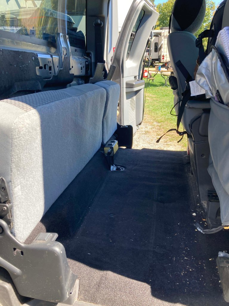 Unfortunately new ones are $1,000 just for the part and I didn’t want to spend that much. Imagine my excitement after months of searching when Stoystown had one!!!. Lee went right away and it only cost $100 for the seat and then another $100 for the seatbelt hardware. $200 was a huge bargain and in a few hours we had a back seat again!!