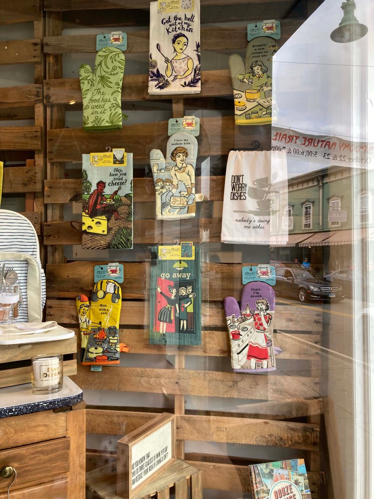 There is a really interesting set of shops over the bridge that have an eclectic selection of local stores. Unlike other towns that are all chain stores, this one had room for local owners. We didn’t go into every one because masks were mandatory but we did go into several and really liked what we saw.