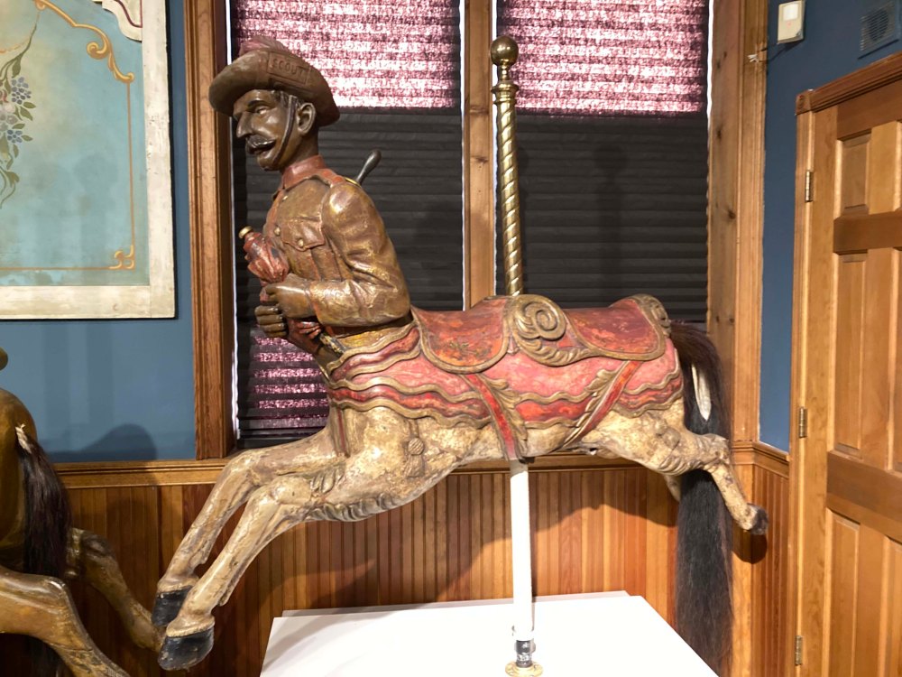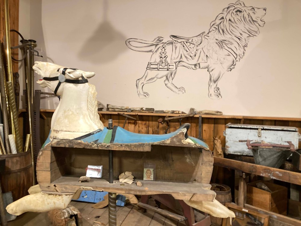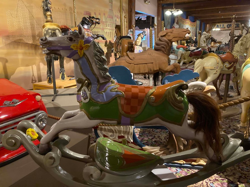 I also learned that there were three major styles in American Carousel art. And make no mistake these are intricate carvings done by several notable families. The styles are Coney Island, Philadelphia, and Country Fair and the museum has groupings of each, In addition there are European style carousels which have their own unique flair as well. When I was a kid I vaguely recognized I preferred one style of carousel and horse other another and when I saw them all together I really could see the differences. I would love to say I was able to group these pictures by type but to be honest I took pictures on what caught my eye and they are all jumbled together. Using the picture below though maybe you can figure out what group they belong in.