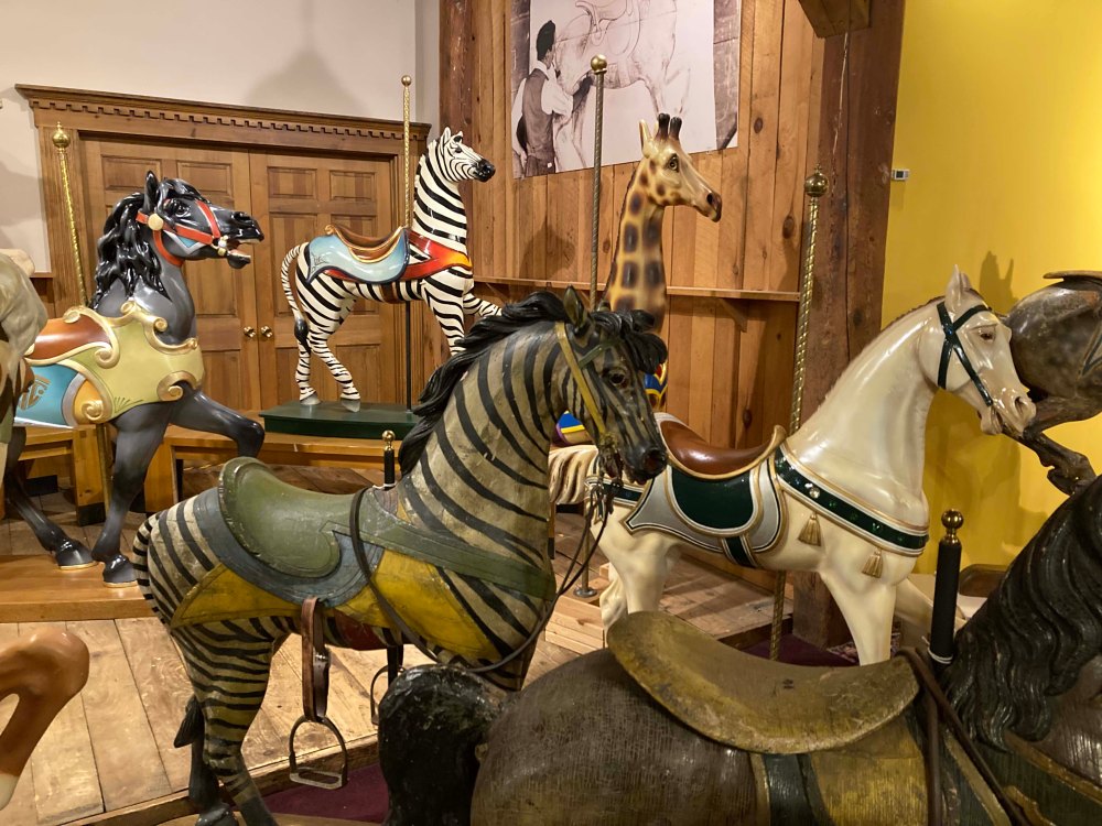 As we are traveling we often stop at small, little known museums and almost always they are worth more than their reasonably priced cost. This was definitely true of the New England Carousel Museum which is not only a museum, but a birthday party and wedding venue, with a bonus small fireman’s museum as well! I love carousel horses but didn’t know much about the history of them, so not only did I find it beautiful but I also learned a ton. Plus one free ride on their indoor working carousel comes with the $8 admission. Can’t get much of a better bargain than that.