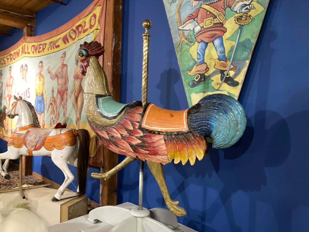 In addition to the animals, the museum has other items including music machines that worked, banners, and other carnival machines. These weren’t the focus but they were sprinkled throughout and added some variety to the collection. When we asked one of the museum people to turn on one of the machines they happily did so and we got some great video.