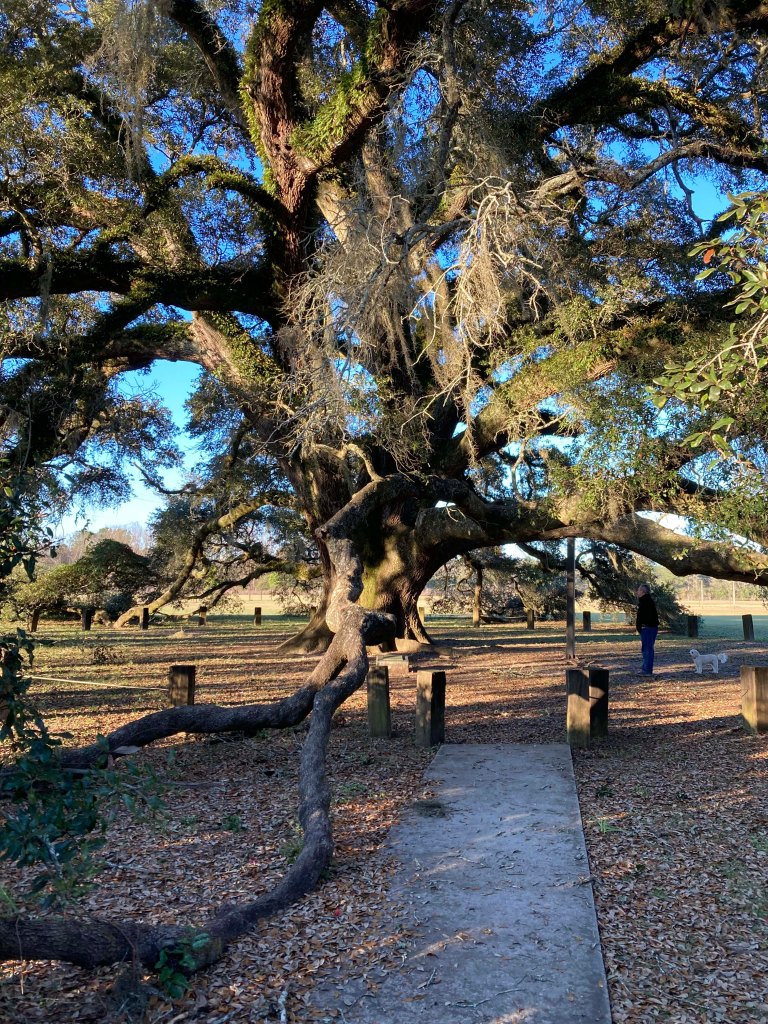 Actually that wasn’t the best of all, because the oldest tree in Alabama (over 300 years old) is a short walk away and it is beautiful. This is the most beautiful oak tree I have ever seen (and I’ve seen some beauties) and its right next to us. Plus the park is on a river and Jack can run free. Absolutely fantastic and a great way to start off a new year!!