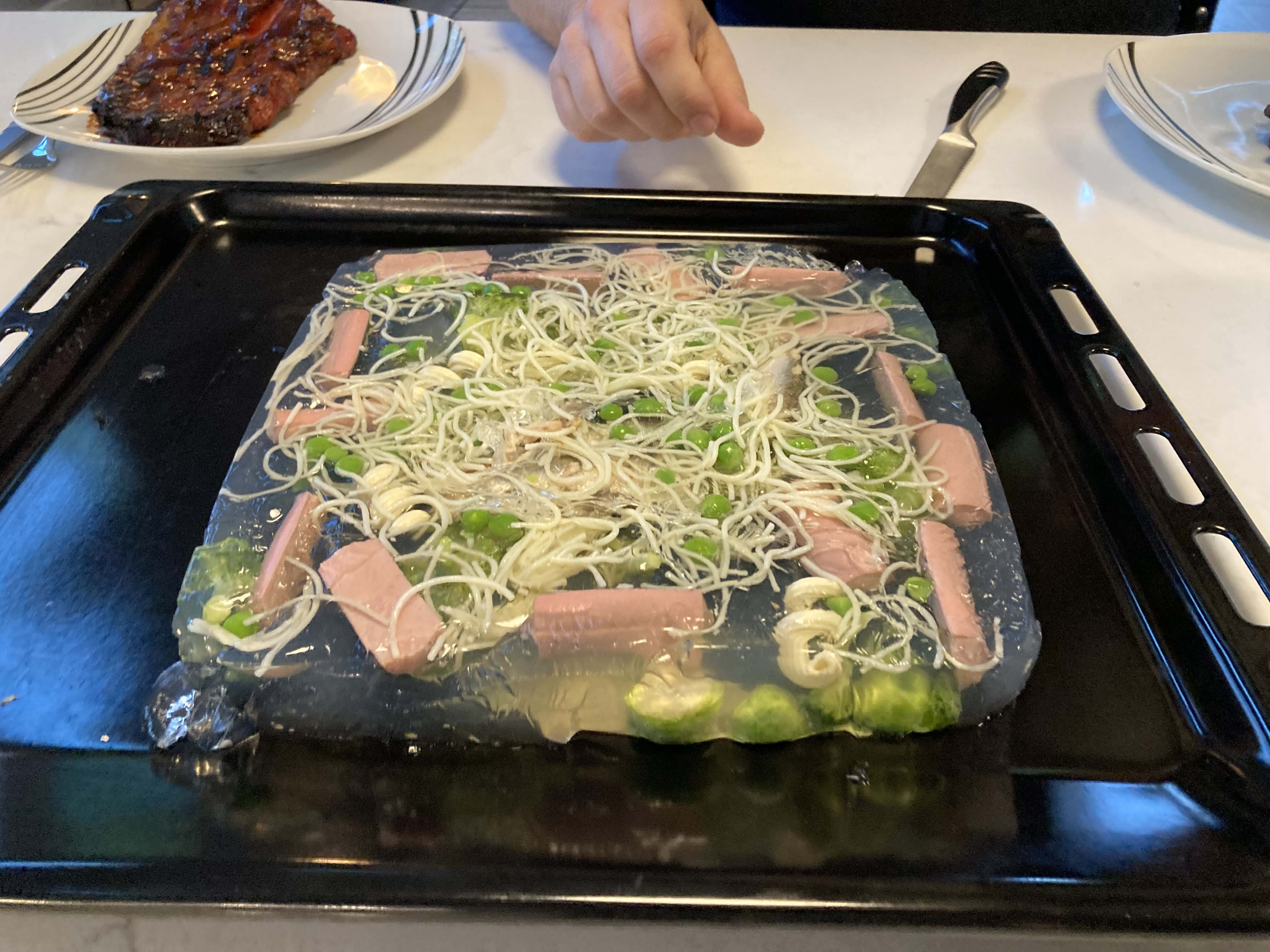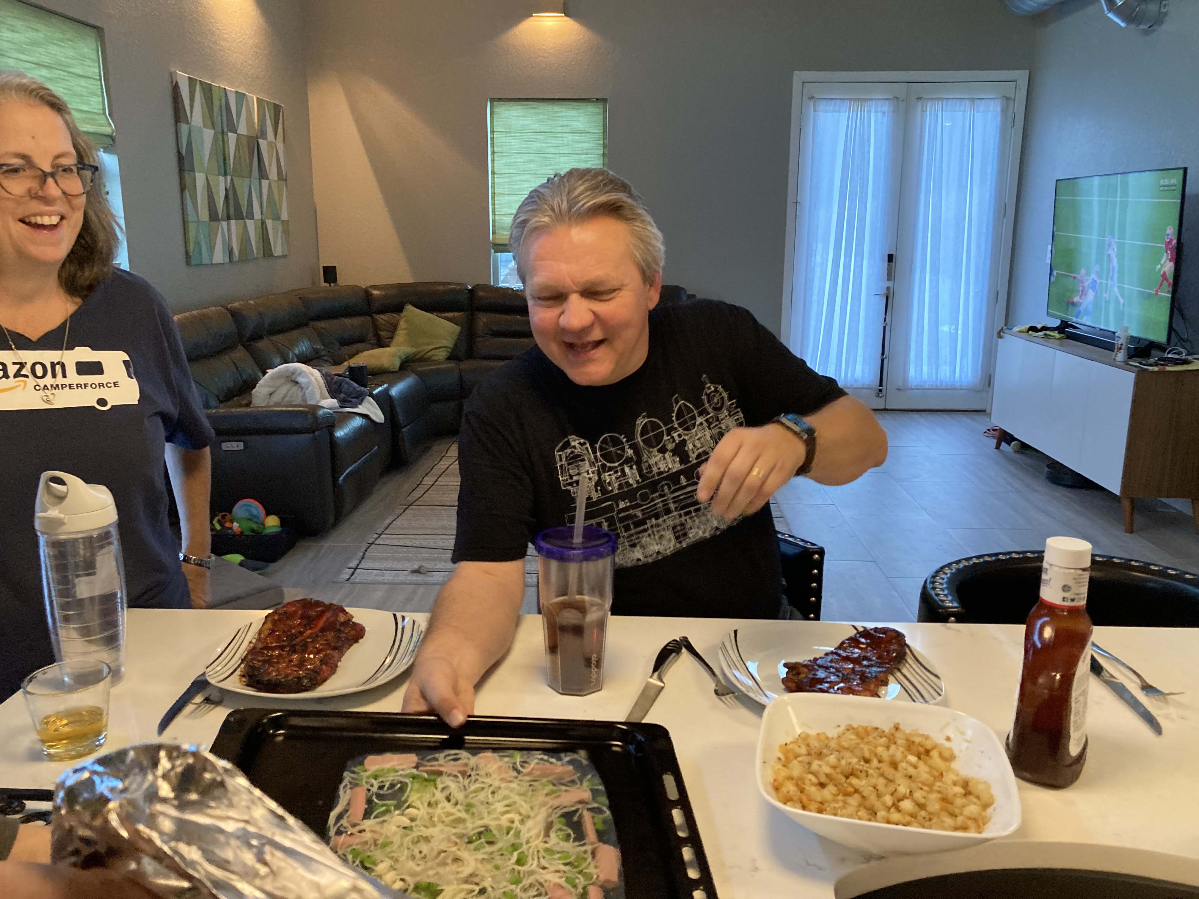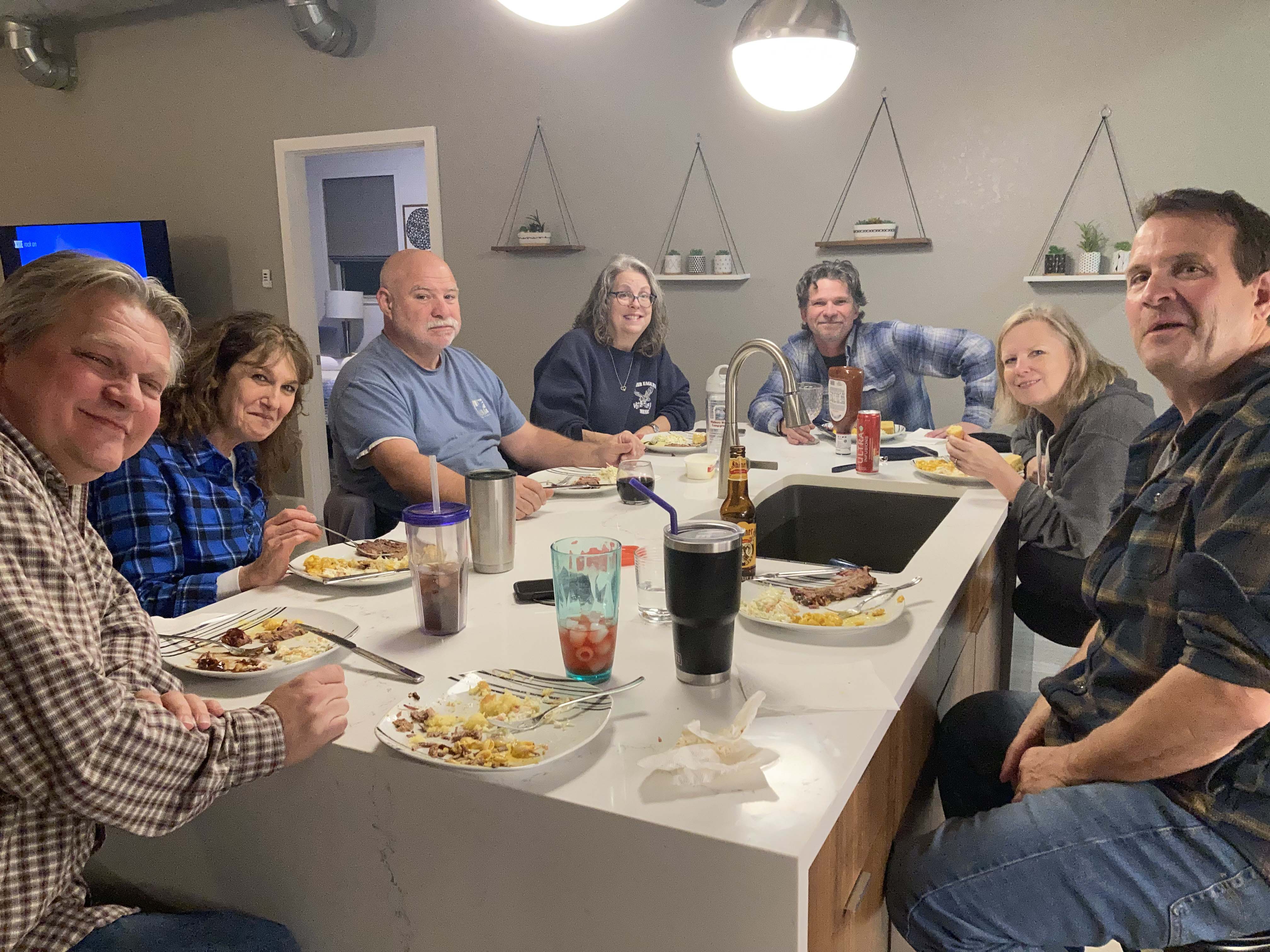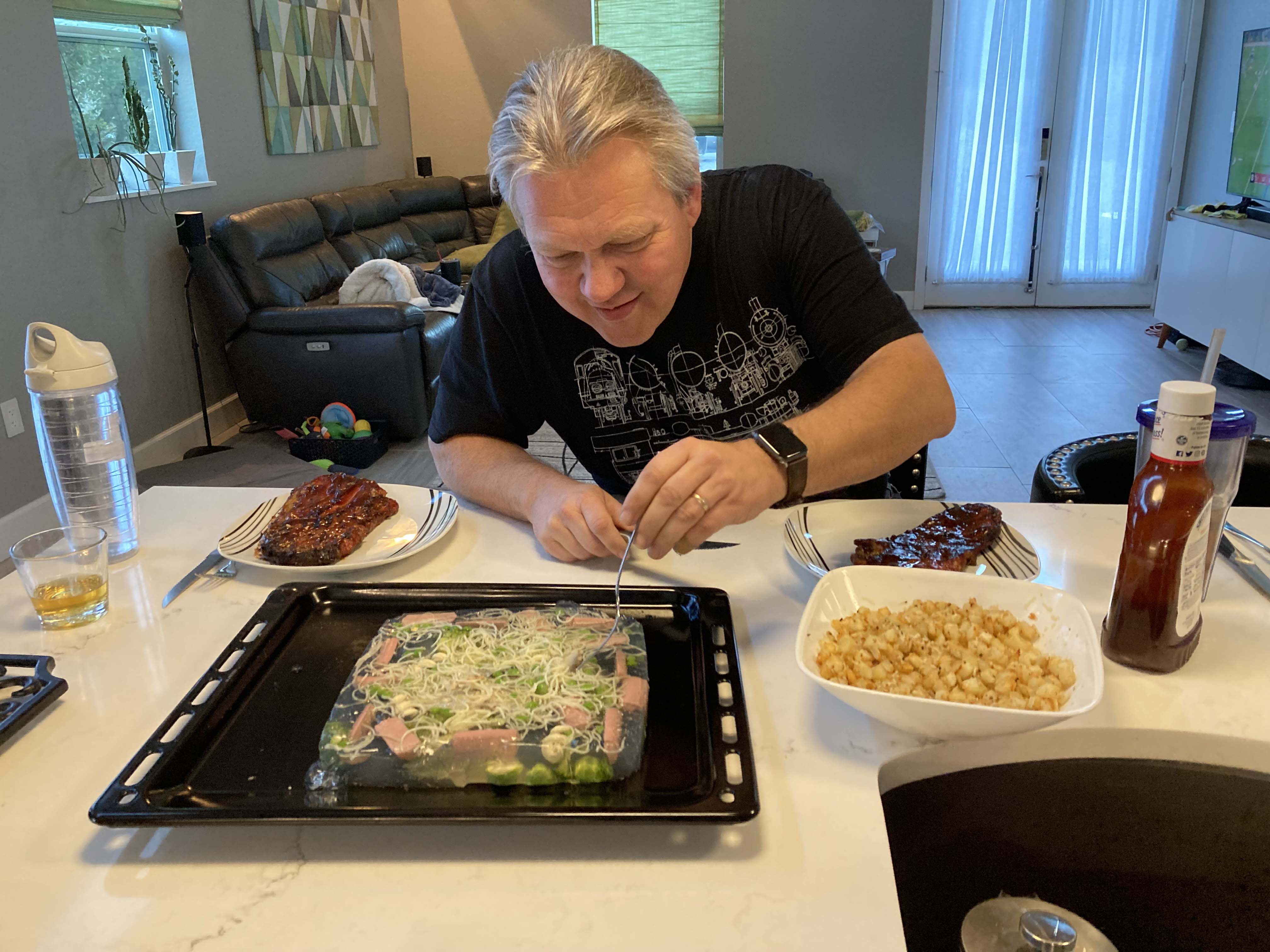 It’s been another long year and we were very excited to land at the Center For Mental Wellness for awhile. It’s been over a year since Lee has seen Cori and Greg and we have had minimal chill friend time lately. We call Cori and Greg’s place the Center for Mental Wellness since its a great place to just sit and decompress. And personally I really needed it. When we arrived we were greeted with lots of hugs and a welcome dinner. The dinner was great but Lee received an unusual menu selection..a weird jello mold. He’s been posting these weird jello molds from the 70’s on Facebook and Cori and Kelly wanted to give it a try. Gotta say with love it looked disgusting but I guess that was the whole point 🙂
