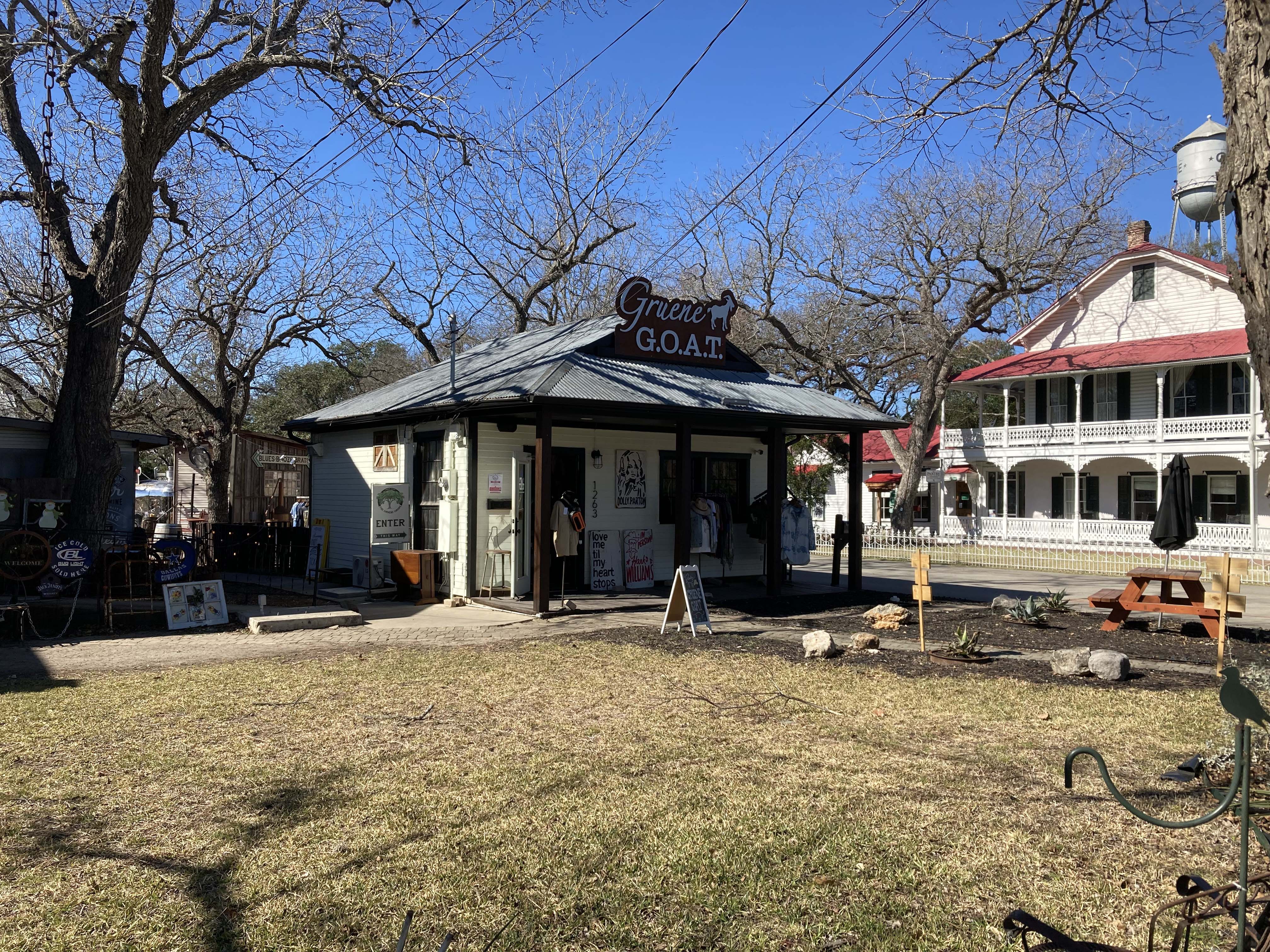 The weather has been hit and miss, but one beautiful day we all went into Gruene and had lunch at one of my favorite restaurants The Gristmill. Gruene is a very cool old Texas town with one of the oldest music spots in Texas.