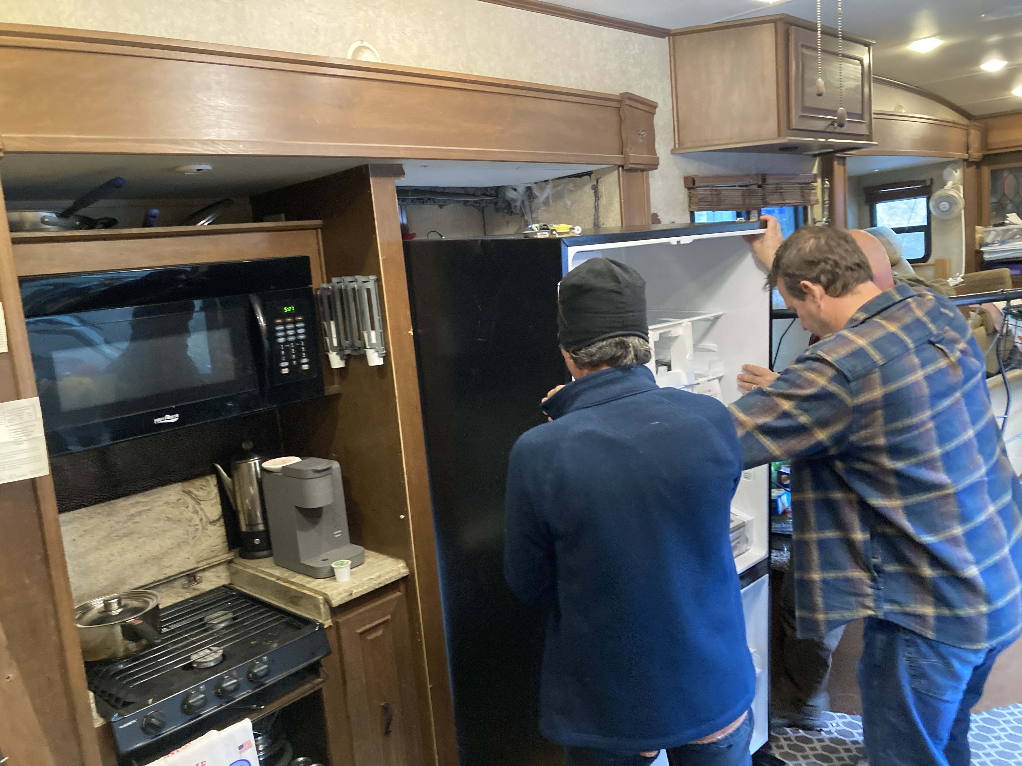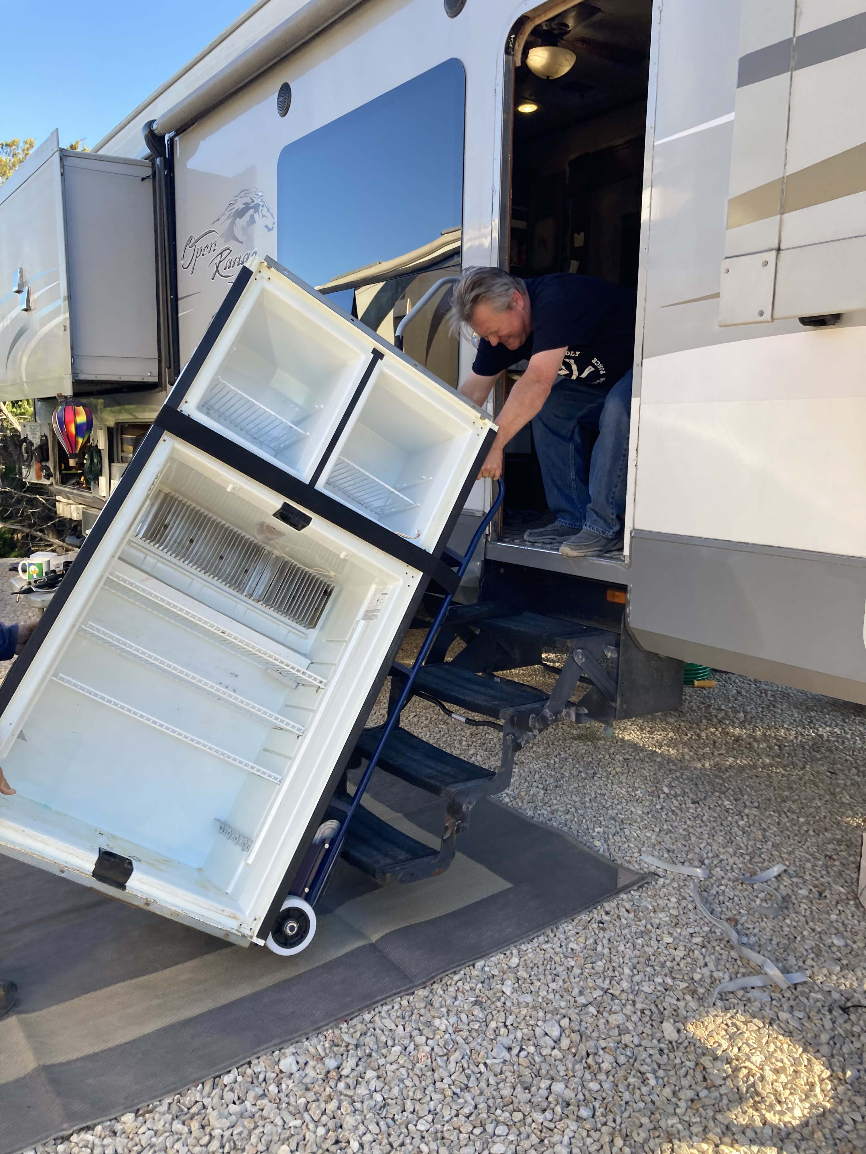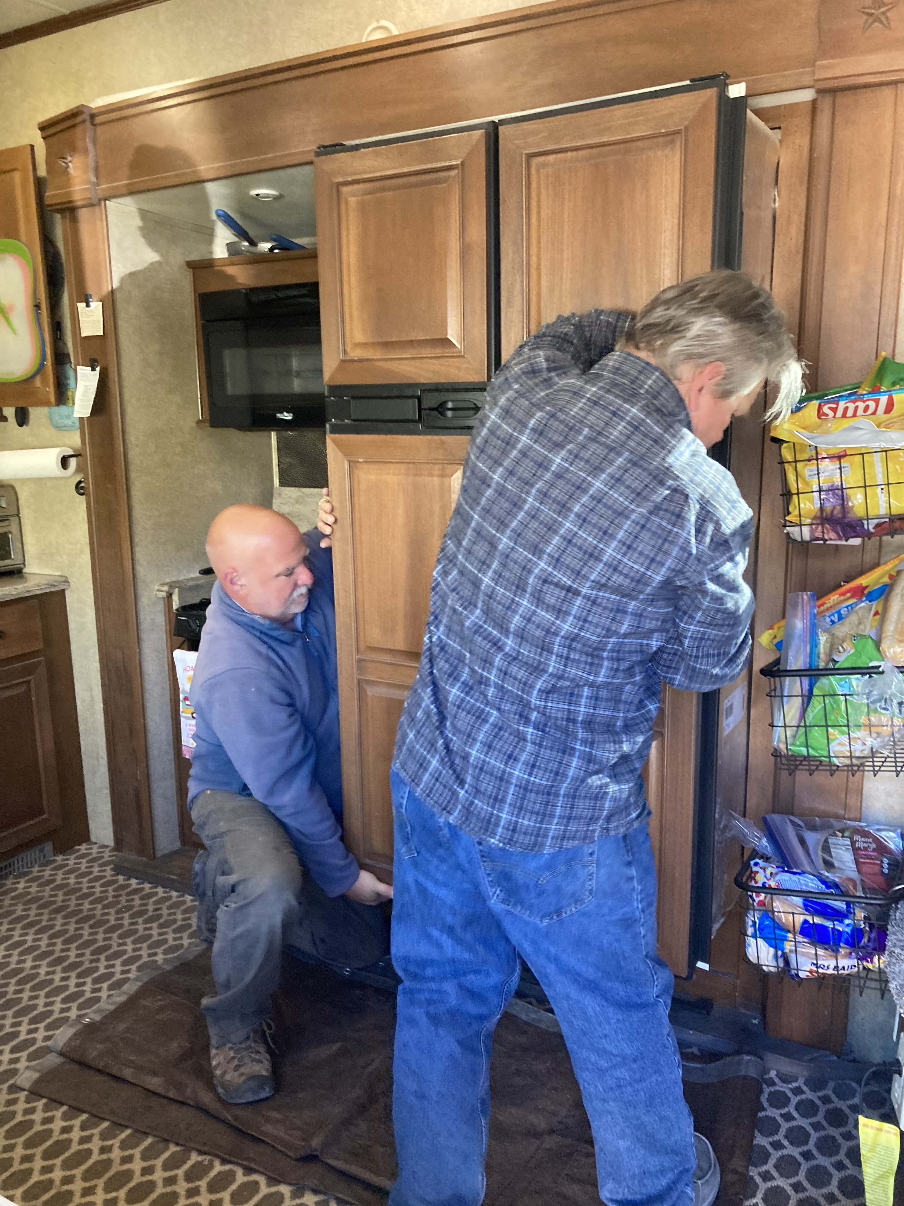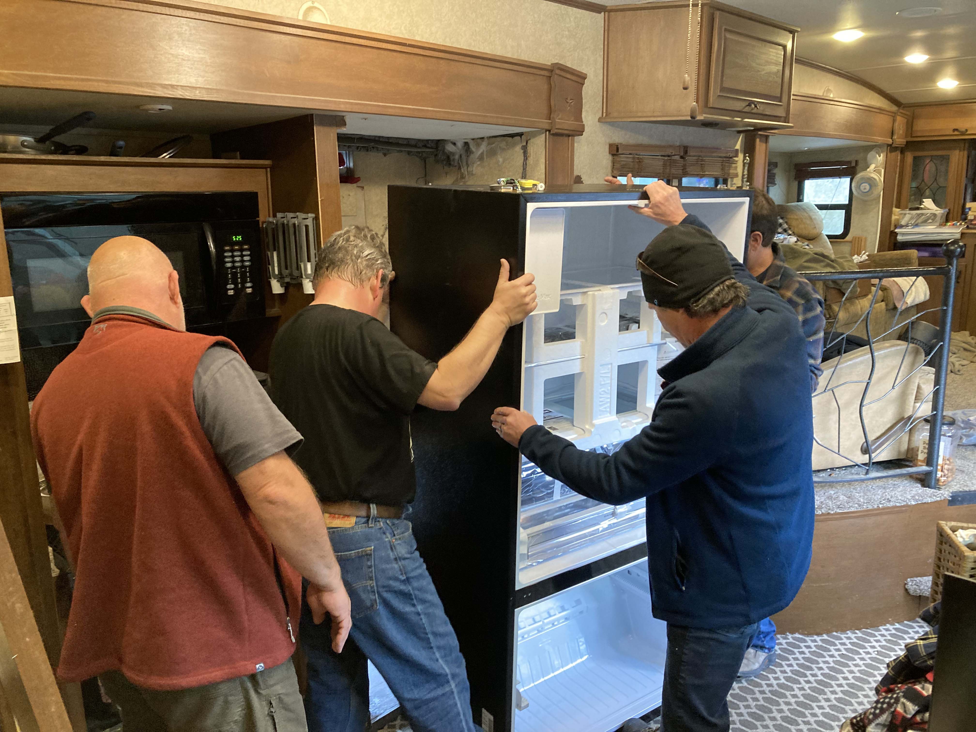 Largely I thought the tradeoffs were worth the flexibility, but Lee got disenchanted pretty early on. He wanted to swap it out for a residential style fridge several years ago but I got stubborn (shocking) and didn’t want to mess. I did agree though when the fridge died we could replace it with a residential model. So we waited for the fridge to die, and waited, and waited and finally when we cancelled our cruise due to COVID concerns I broke down and said sure. Lee was smart; he got Bill and Greg to gang up on me about how our solar system was perfectly adequate to keep a fridge going plus honestly at this point I don’t know why I was stubborn about it.