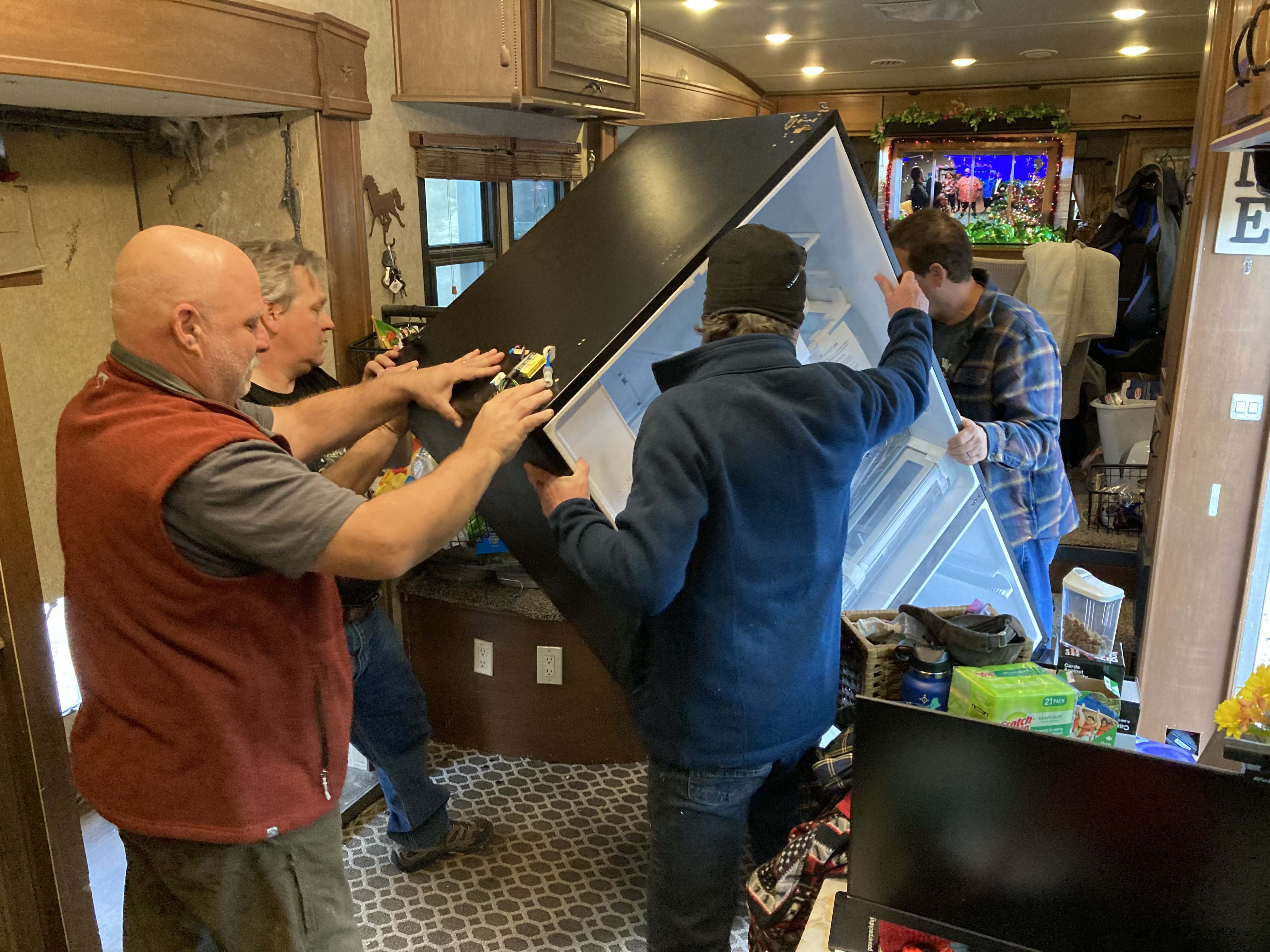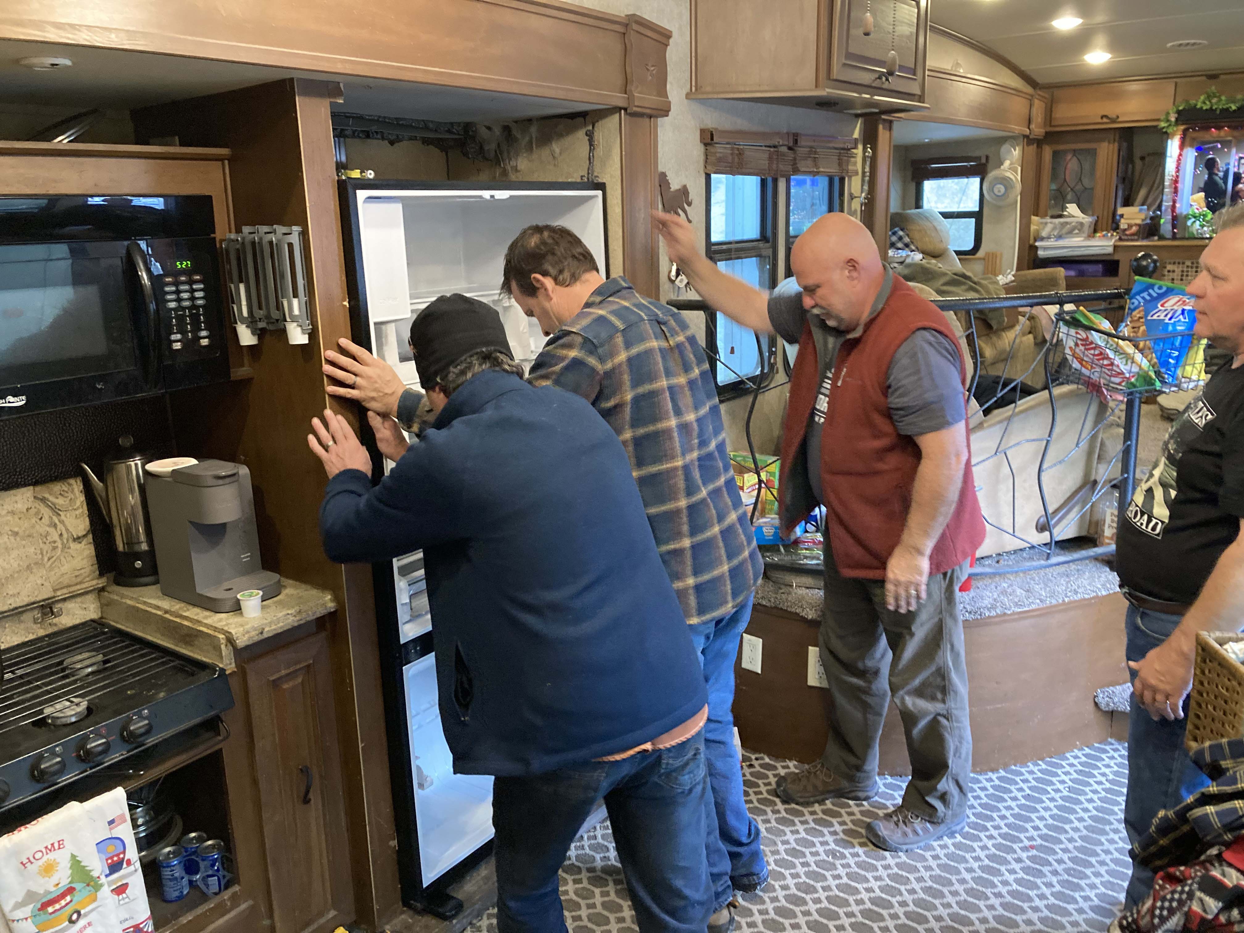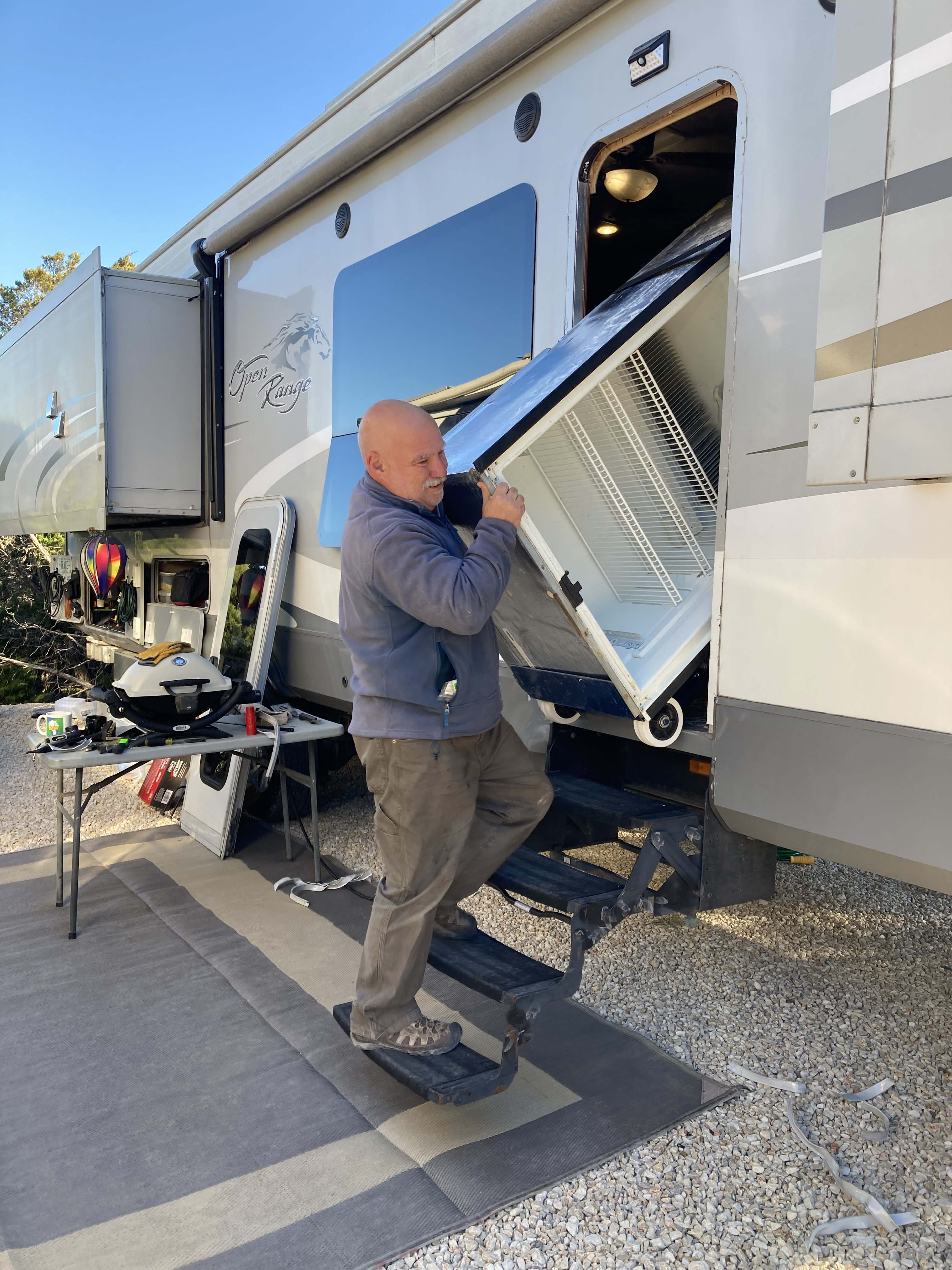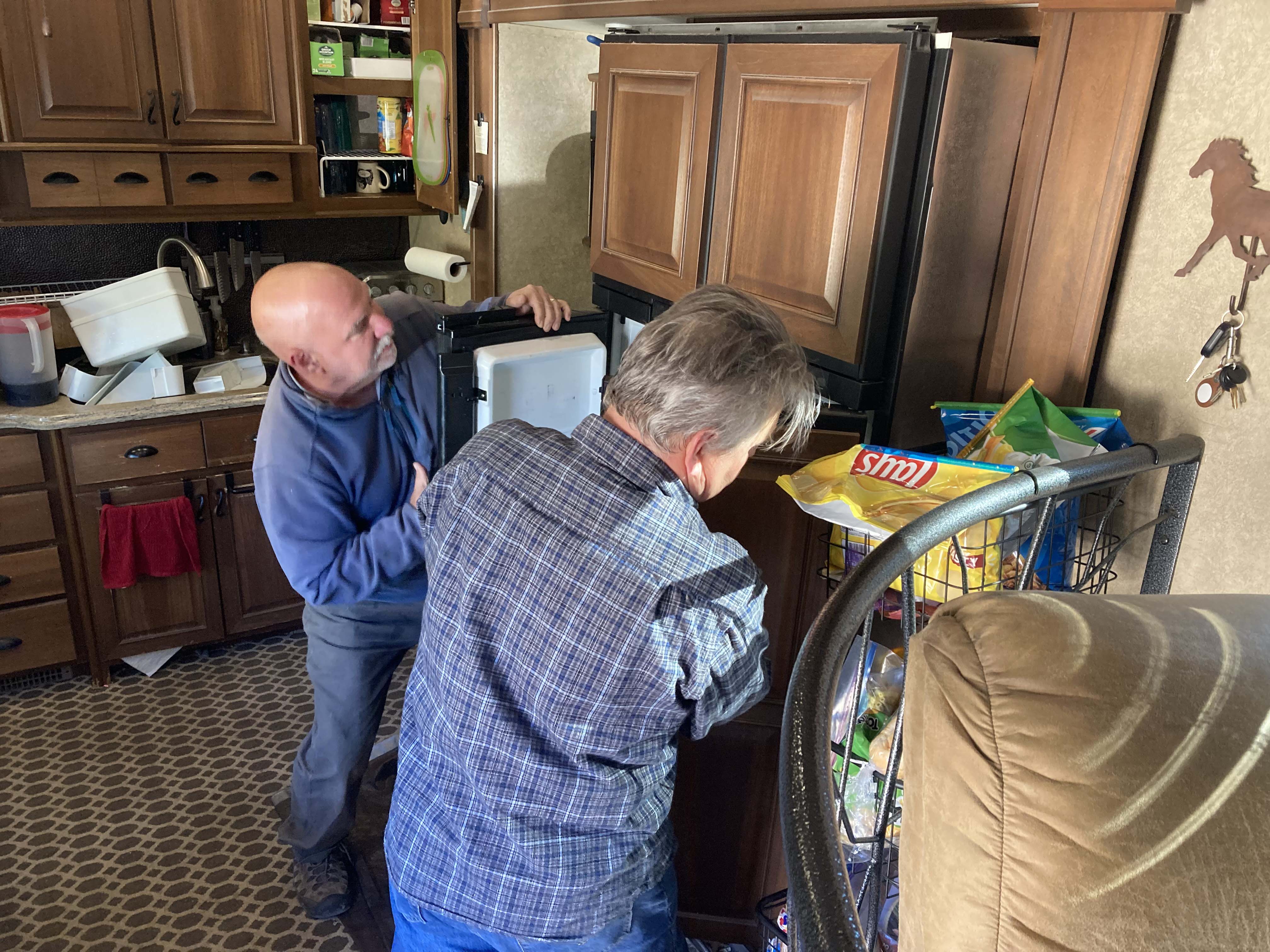 Largely I thought the tradeoffs were worth the flexibility, but Lee got disenchanted pretty early on. He wanted to swap it out for a residential style fridge several years ago but I got stubborn (shocking) and didn’t want to mess. I did agree though when the fridge died we could replace it with a residential model. So we waited for the fridge to die, and waited, and waited and finally when we cancelled our cruise due to COVID concerns I broke down and said sure. Lee was smart; he got Bill and Greg to gang up on me about how our solar system was perfectly adequate to keep a fridge going plus honestly at this point I don’t know why I was stubborn about it.