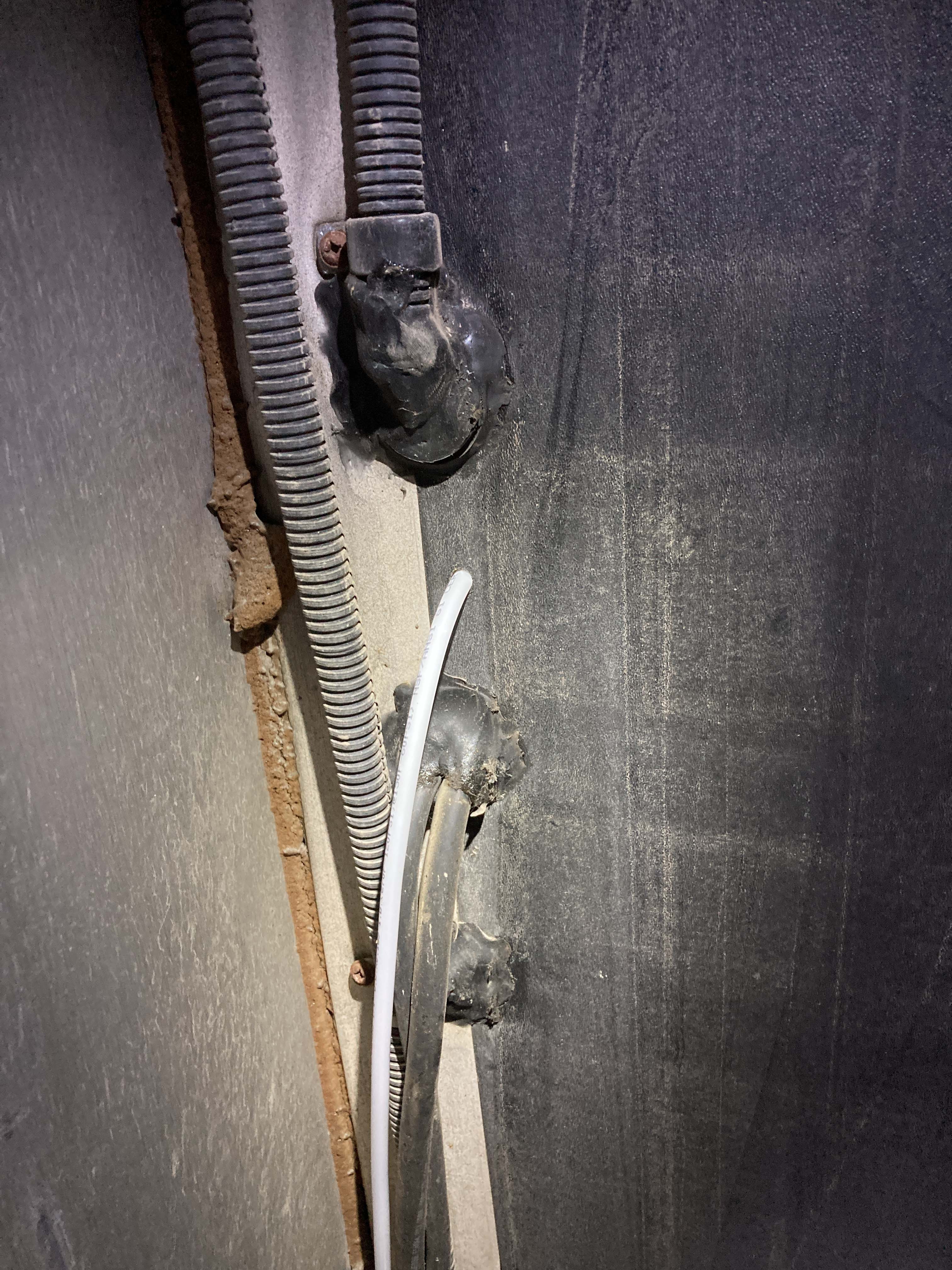 Once the fridge was removed we had a big hole. Lee had to clean the area, build a platform for the bottom, and replace the cover plate. Then he had to foam seal the back up.
