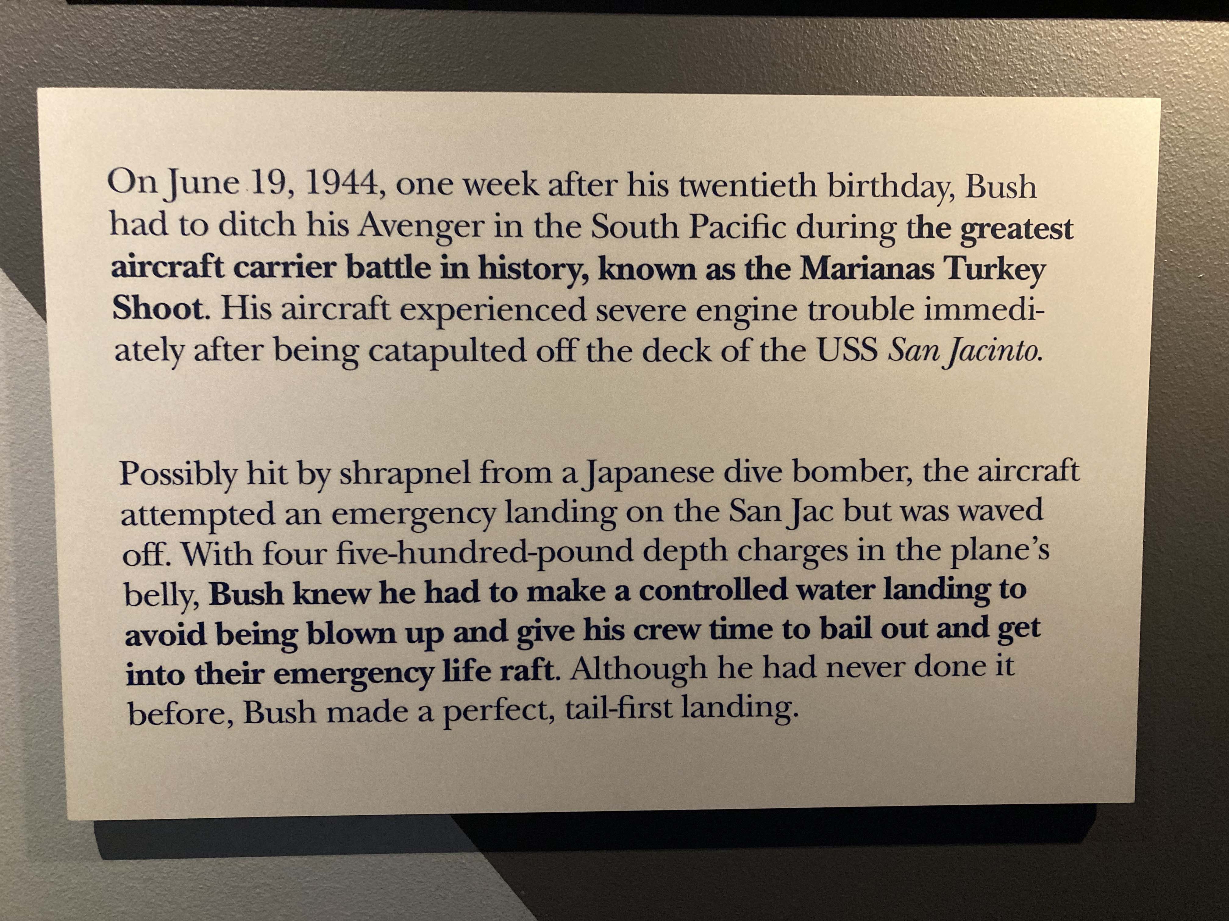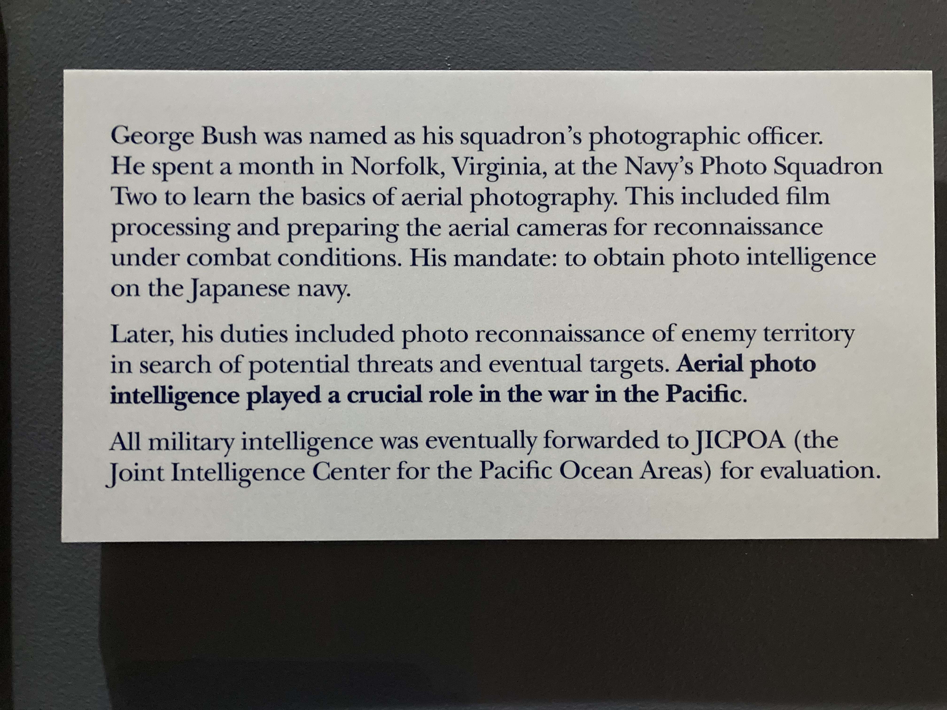 The library also walked through his life and I will say I had trouble with the layout and following the chronology. I actually missed a big section by mistake and had to go back and find it at the end. The beginning of his life was extremely well done and very interesting, I learned quite a bit about how he was raised and his life before becoming president. In particular I found his WWII activities of interest. He enlisted at the age of 18 and was an aerial photographer and pilot. In the course of his service he had a couple of near death experiences.