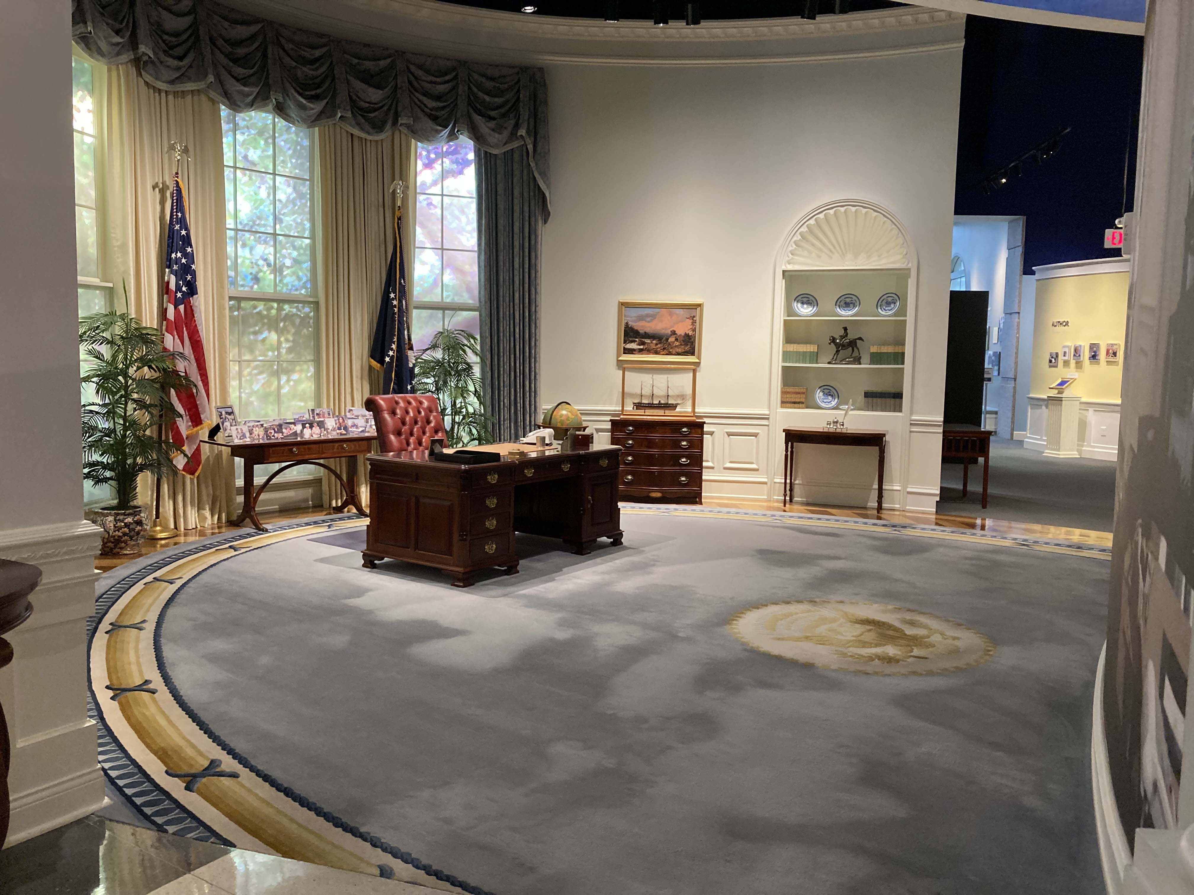 The library itself is only $9 and well worth the ticket. It is a large building that includes his presidential limo, a recreation of his oval office, a piece of the Berlin wall, and artifacts from the first Gulf War.