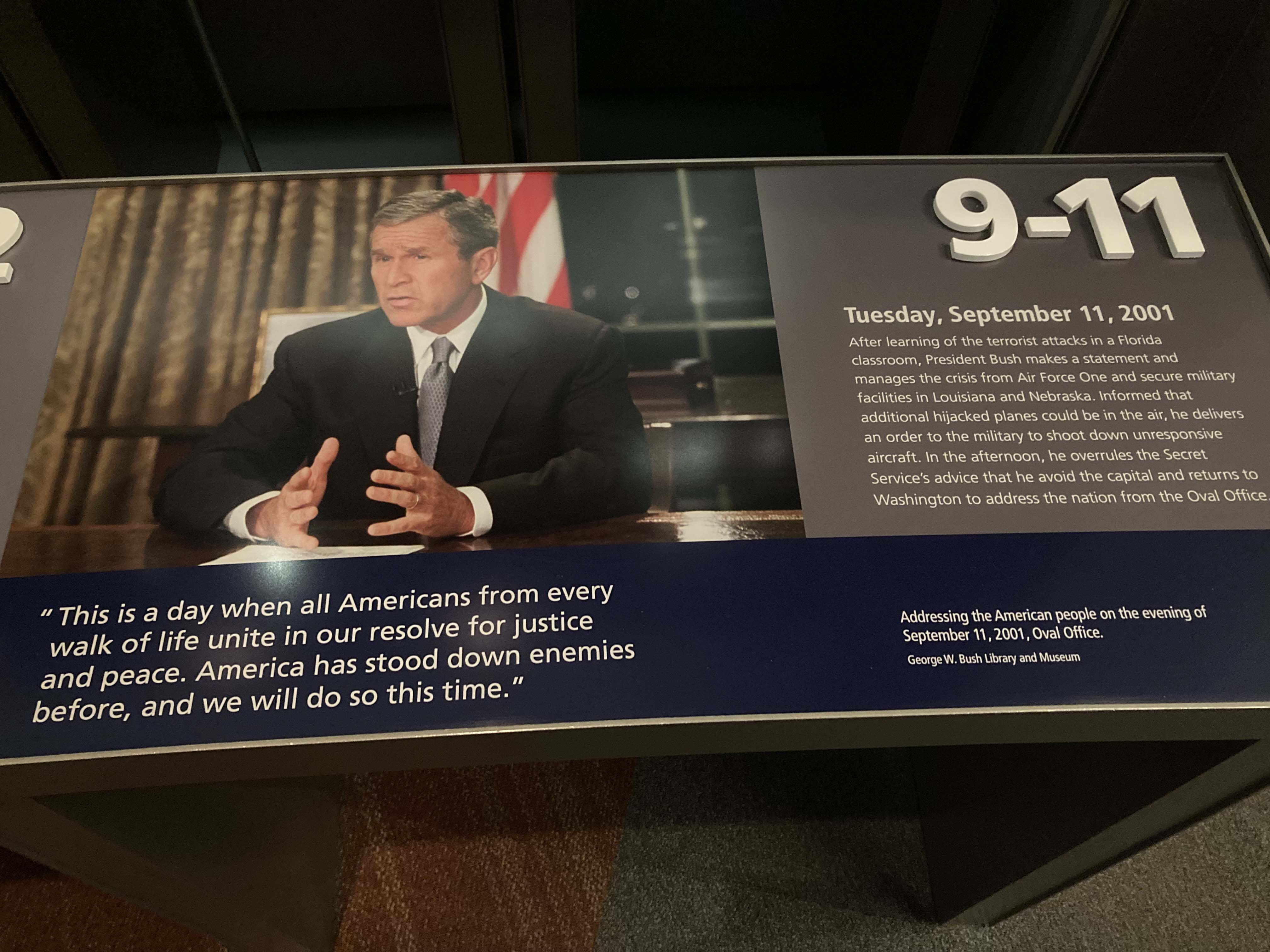 Another sobering section of the museum talked about all the crises that happened during his 8 years in office. It started with the 9/11 attack, the War against Iraq, Katrina, and the Dot.Com crash. No wonder he aged so much during his presidency.
