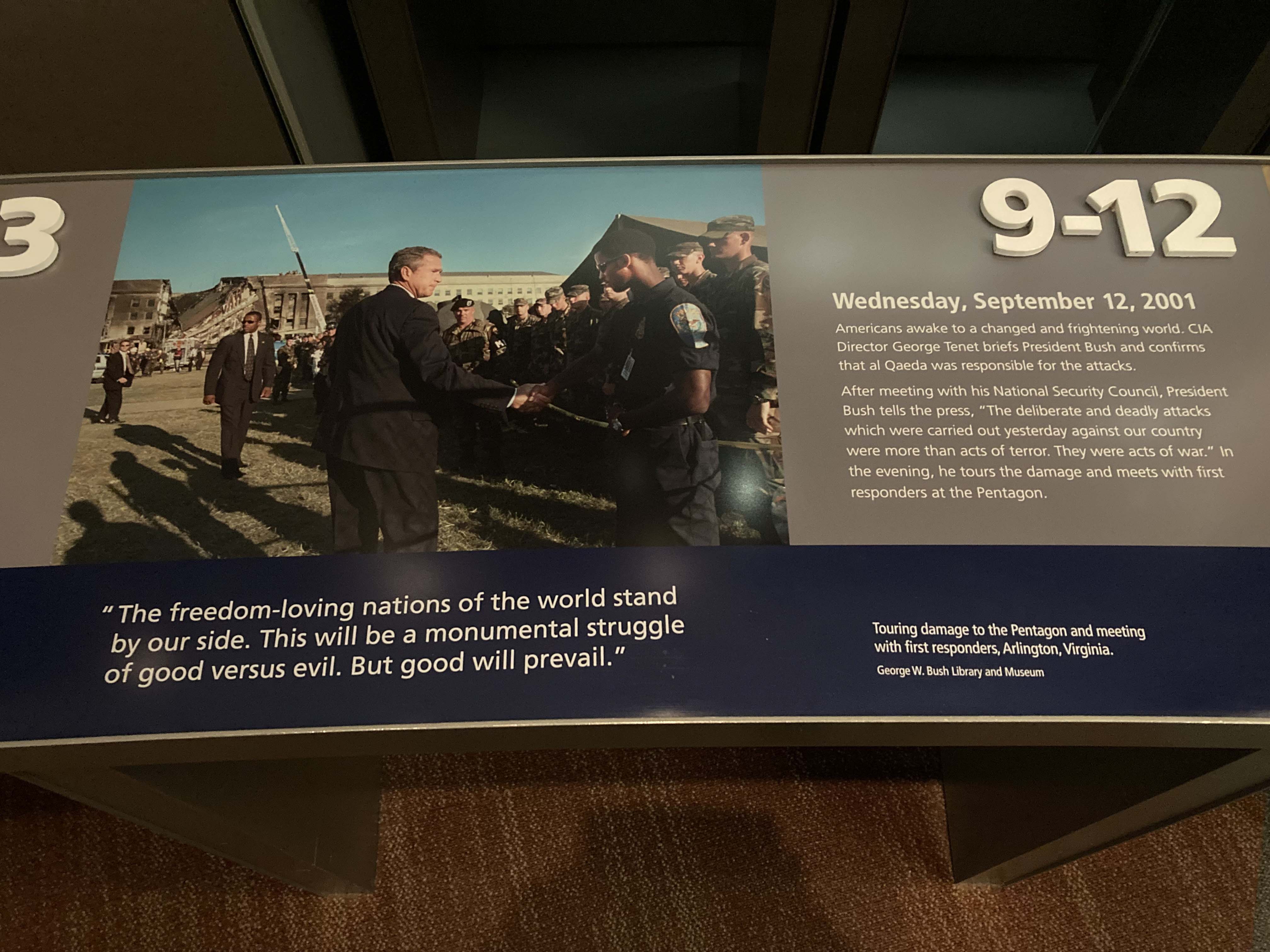 My favorite part of the library was how they handled the 9/11 attacks and I thought this section was extremely well done. They had a daily accounting of what he did for the first several days along with a beautiful memorial wall with all of the names and running news feed of the towers. Almost everyone who was alive at the time remembers where they were when the towers fell and I felt this entire section of the museum was handled beautifully.