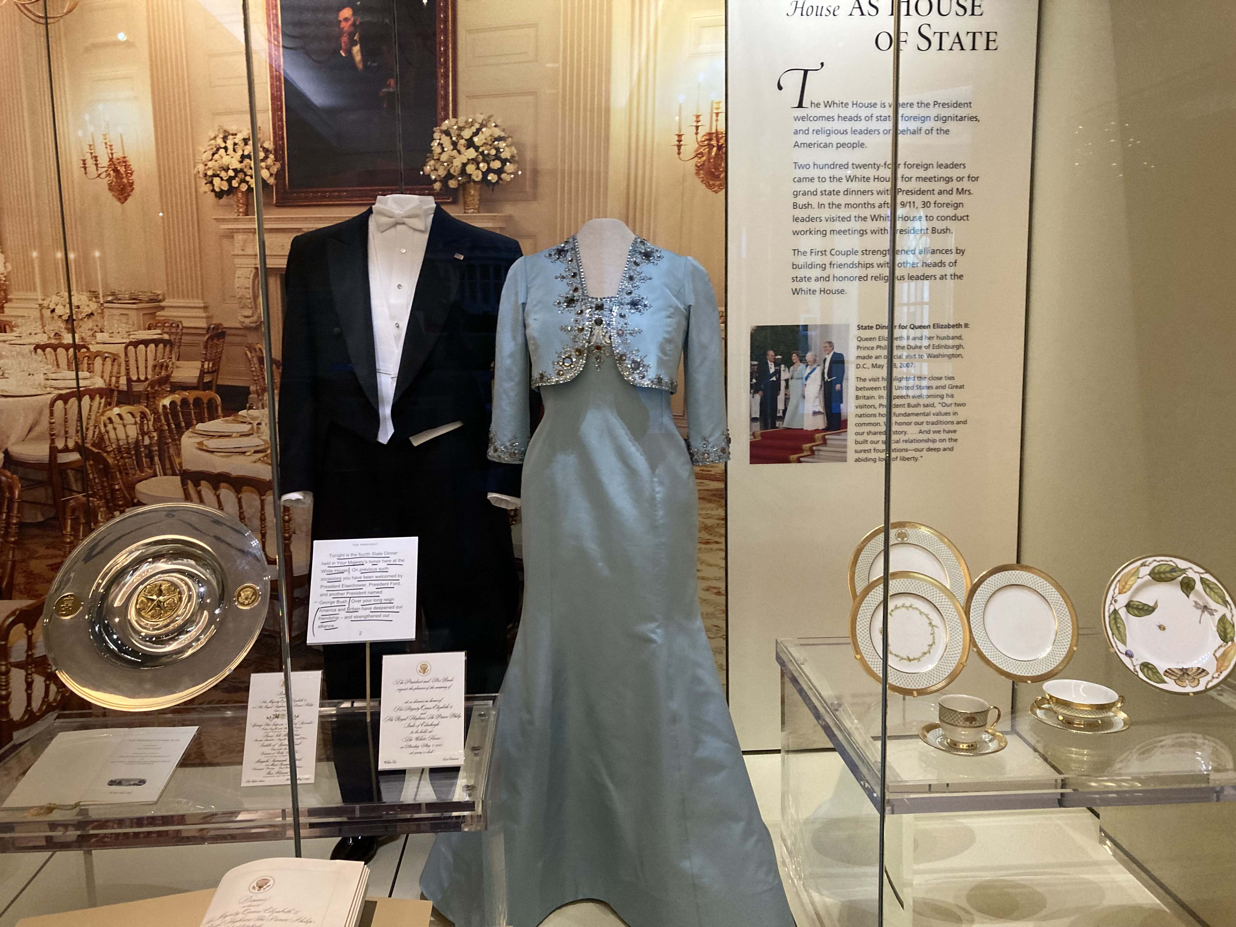 I was also pleased to see that they had a large section on Laura. Because she was so quiet about it, I didn’t realize how much traveling she had done and how she advocated for literacy worldwide. They also had a sample of her china (I am fascinated by the choices for some reason) and some more of her outfits. Yes, the First Lady’s life is about way more than hair and clothes but I still enjoy looking at what they wore.