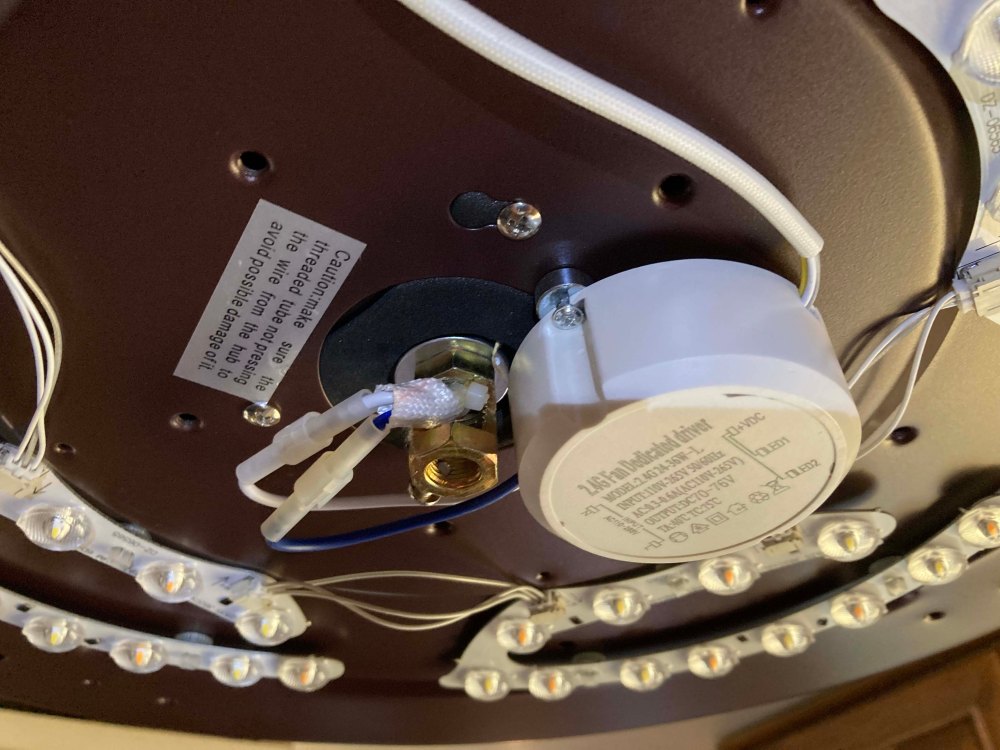 Finding a ceiling fan wasn’t that easy though. Because of the layout of our cabinets and our slides, we had to find a fan that was no larger than 42″ at the end of the blade and almost all of the ones at that size were pretty basic. There were some absolutely beautiful ones at Lowe’s in the 60″ or larger range, but nothing really good at all in the smaller size. Instead of racing all over town going to different stores, we went and looked on Amazon and found something very interesting.
